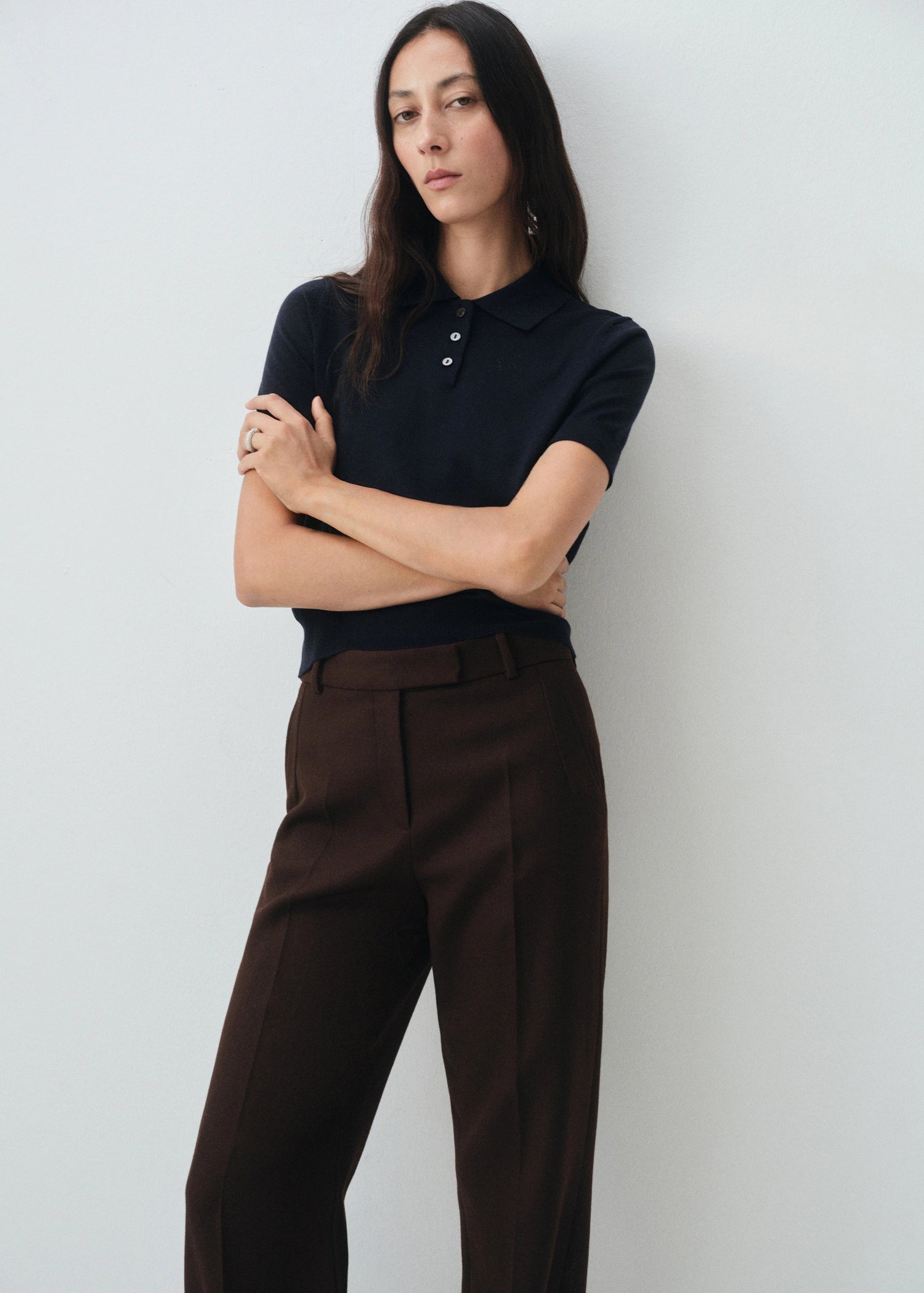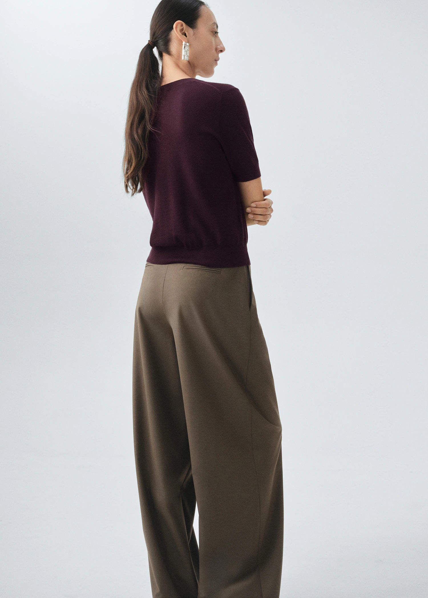 Crafted from 100% merino wool fine-knit fabric, this straight design features an elegant V-neck and short sleeves. No fastening. Selection Collection