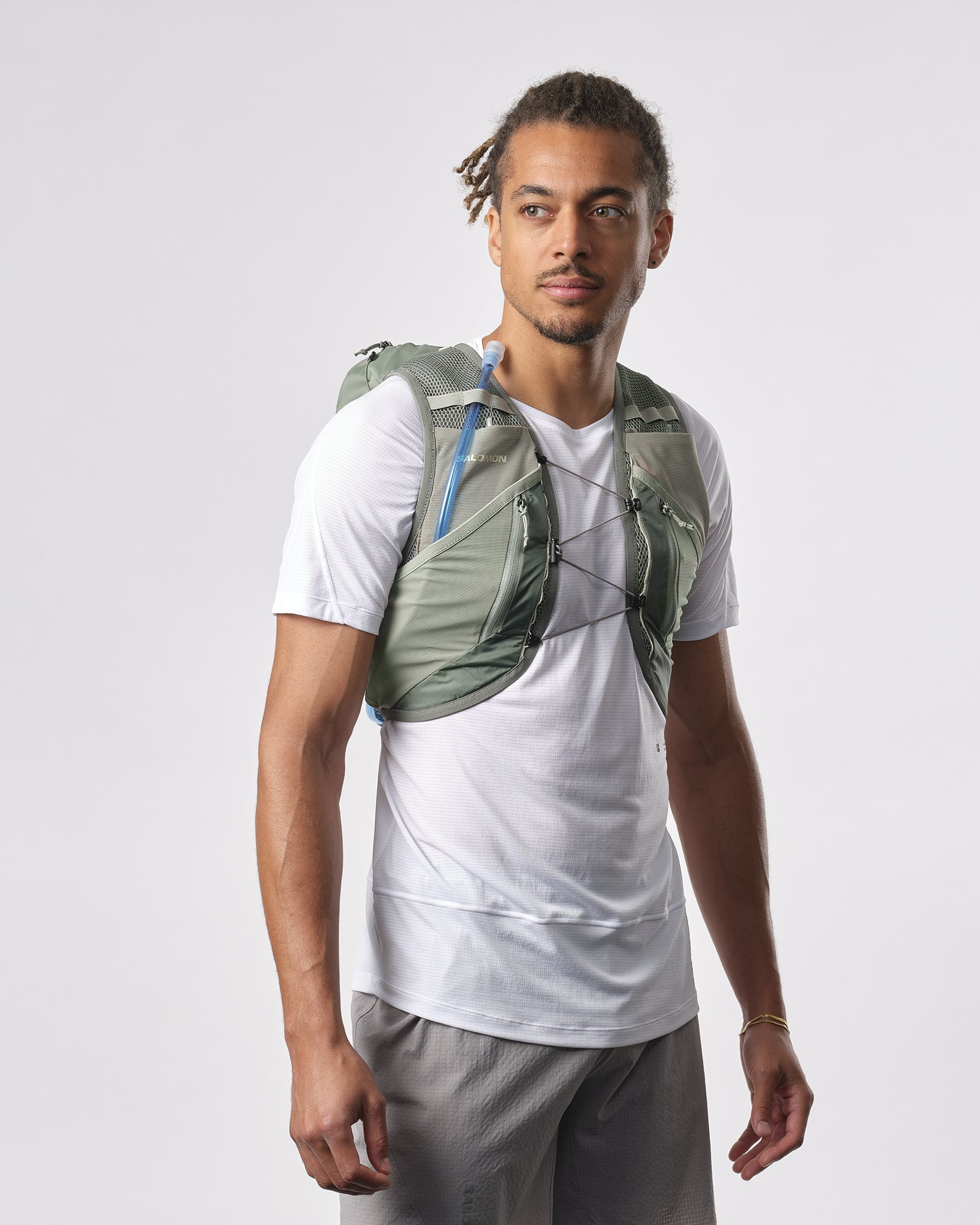 To provide a stepping stone to take your trail running to the next level for ultra-distances, we launched the ACTIVE SKIN 12 with reservoir ¨C the biggest volume yet in this range. The fabrics are soft and breathable, the fit is ultra-secure, and the 1.5-liter bladder keeps you hydrated. What's more, chest pockets provide effortless access to your flasks (not included).