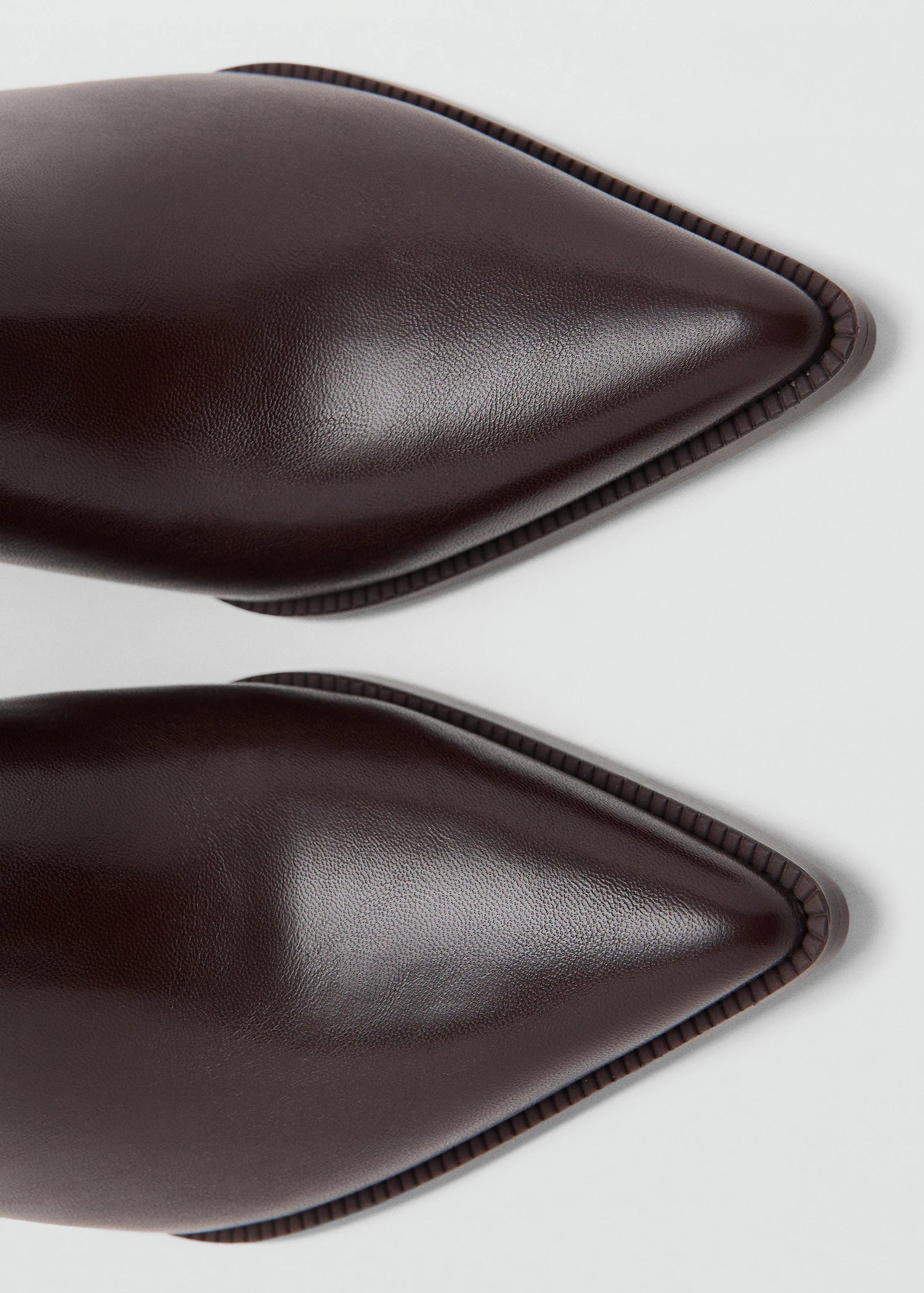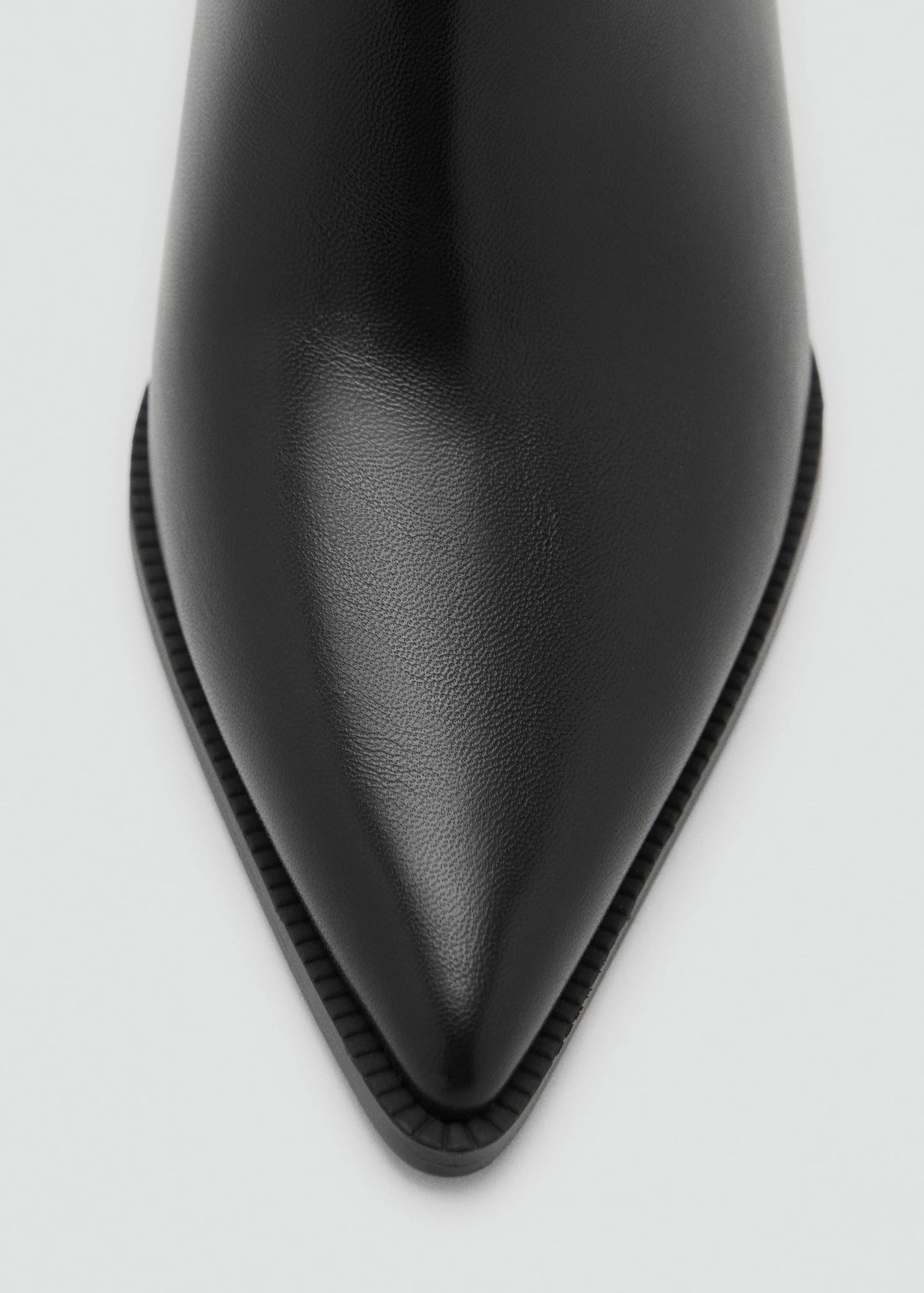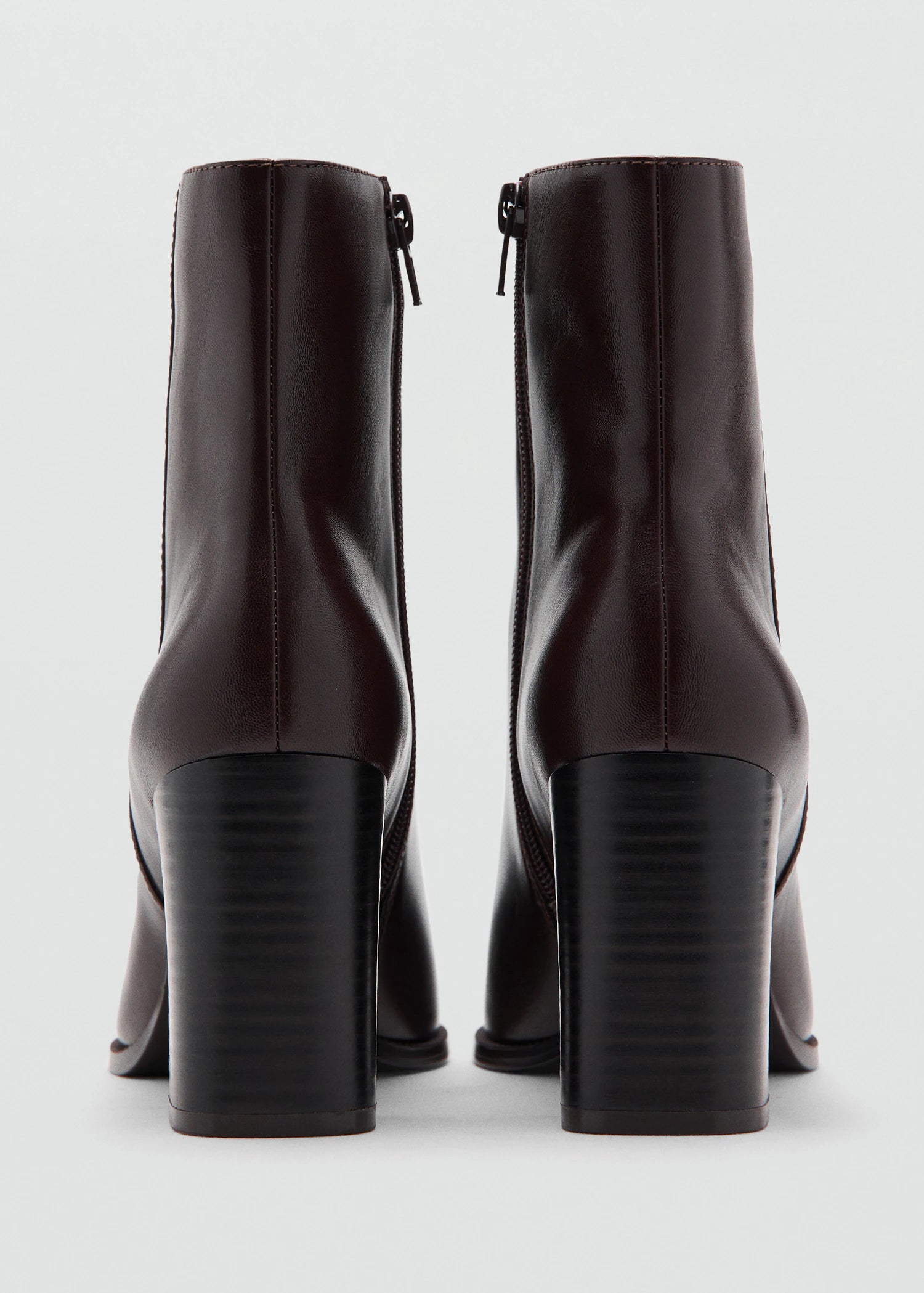 Faux leather. Pointed. Block heel. Side zip closure. Inner lining. 8.5 cm heel.