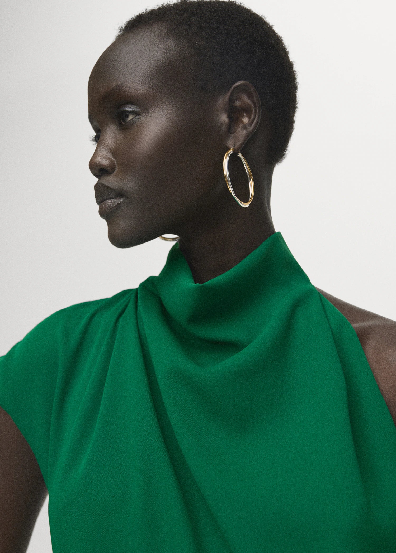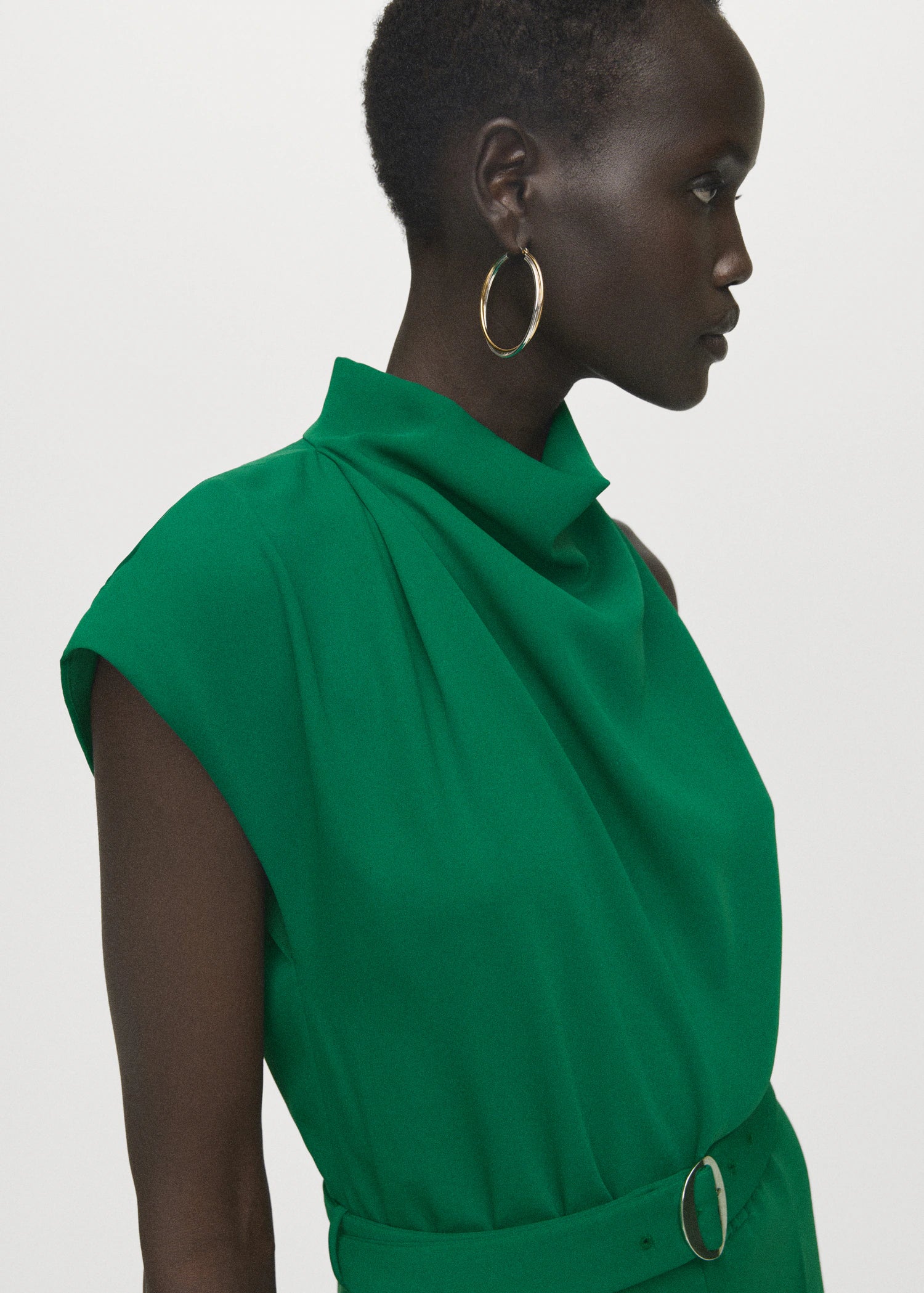 Long design. Straight Design. Draped neckline. Asymmetric sleeves. Belt loops. Belt buckle fastening. Button fastening at the neck. Inner lining. This garment belongs to our event collection, designed to make you the perfect guest at any party, wedding or ceremony.