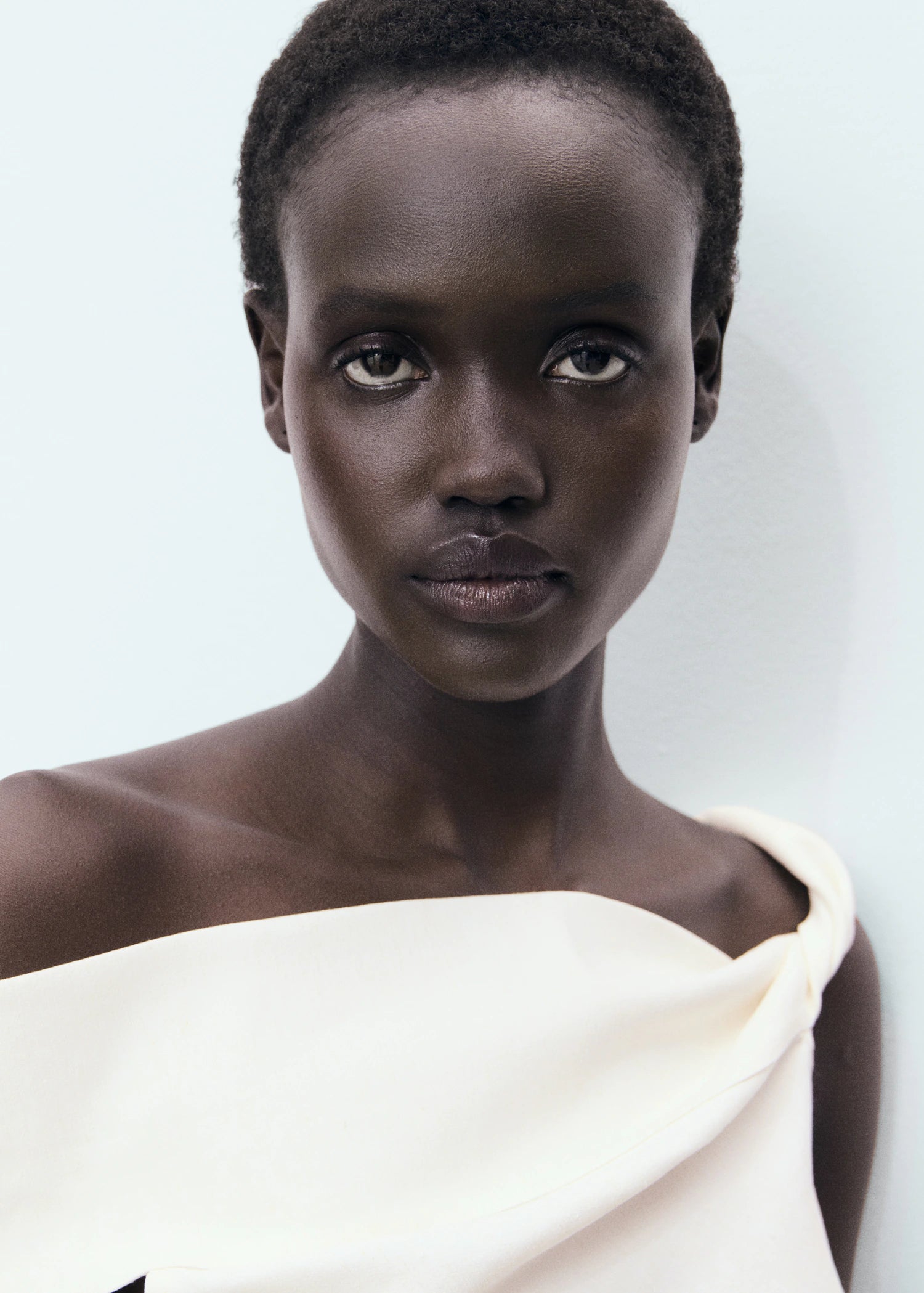 This strapless top is the epitome of laid-back sophistication, with its fitted and asymmetrical design that captures the essence of modern style. The side draped detail adds a touch of dynamic texture, making it an essential piece for those seeking an elegant yet effortless look