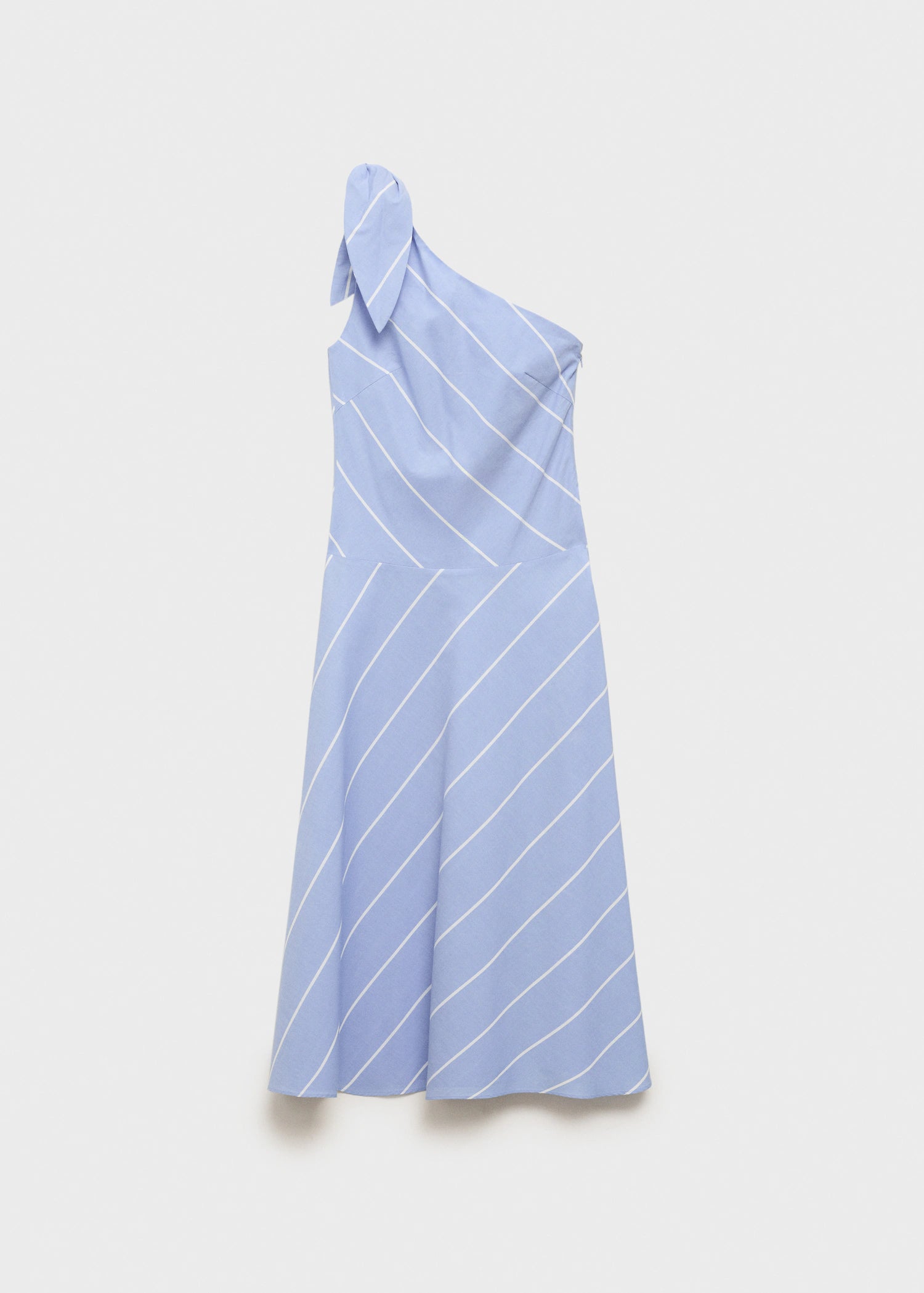 100% cotton fabric. Midi design. A-line design. Striped print. Asymmetrical neckline. Sleeveless. Wide strap. Knot detail on the strap. Side zip closure. 100% cotton lining. This garment is part of our casual collection, designed to stylishly accompany you in your day-to-day life.