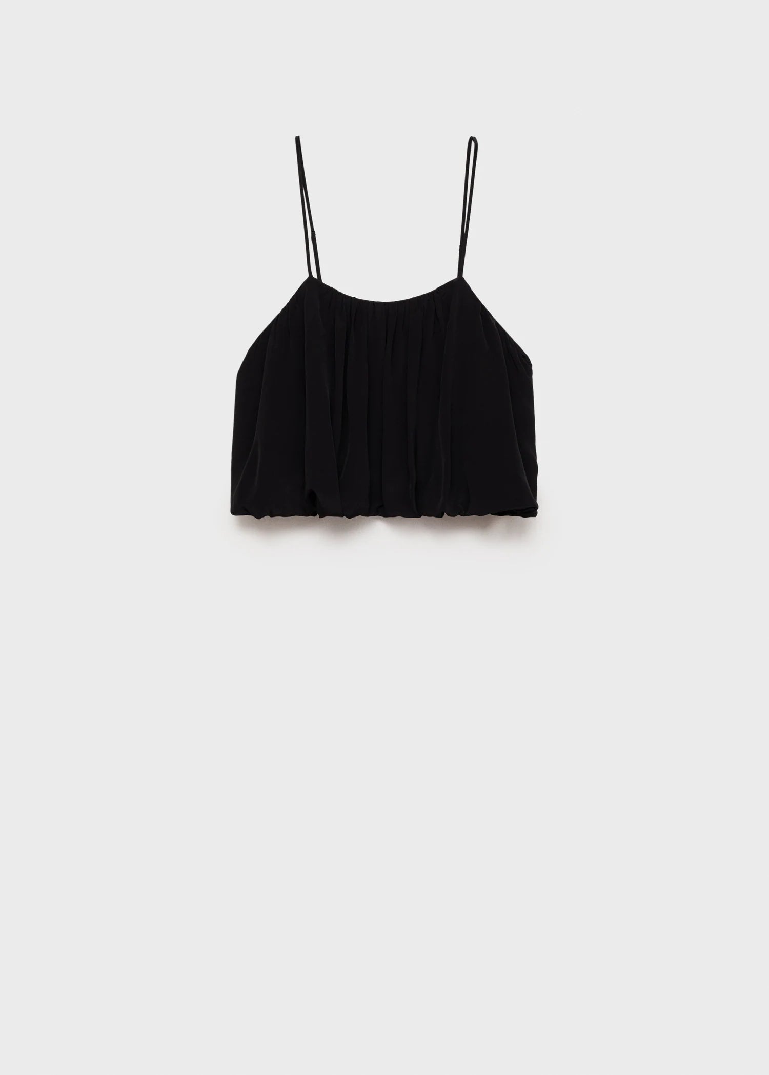With a balloon-style design, this crop top features a plunging neckline and thin adjustable straps for added comfort.