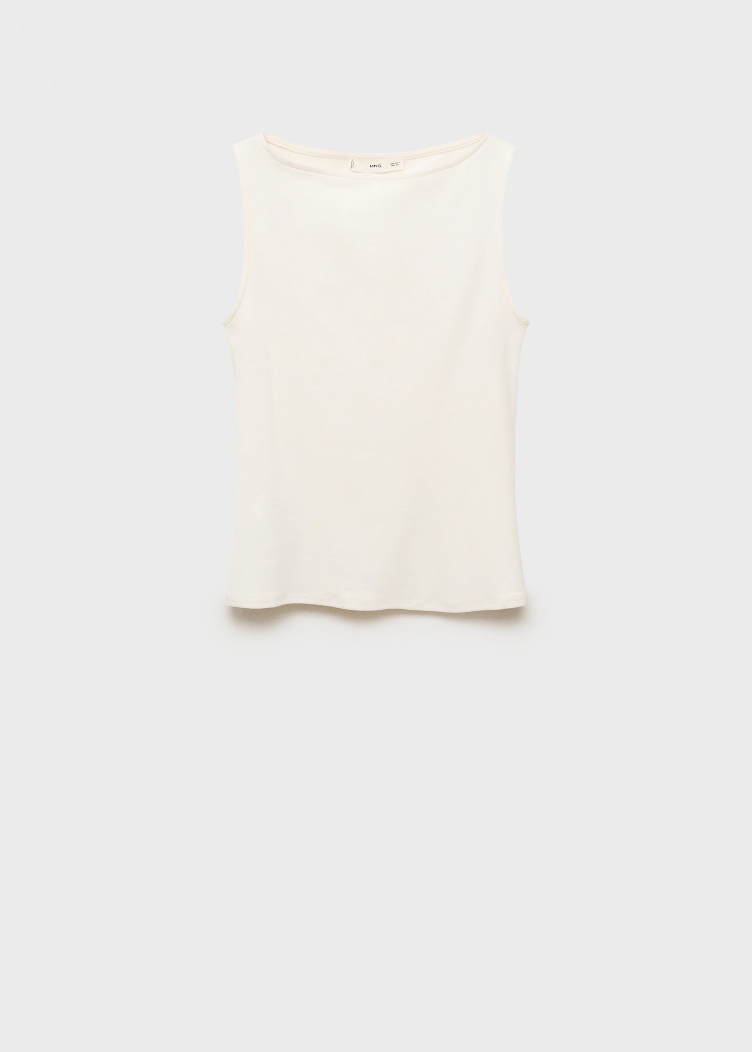 Crafted from cotton fabric, this tailored design features a boat neckline with wide straps, offering comfort