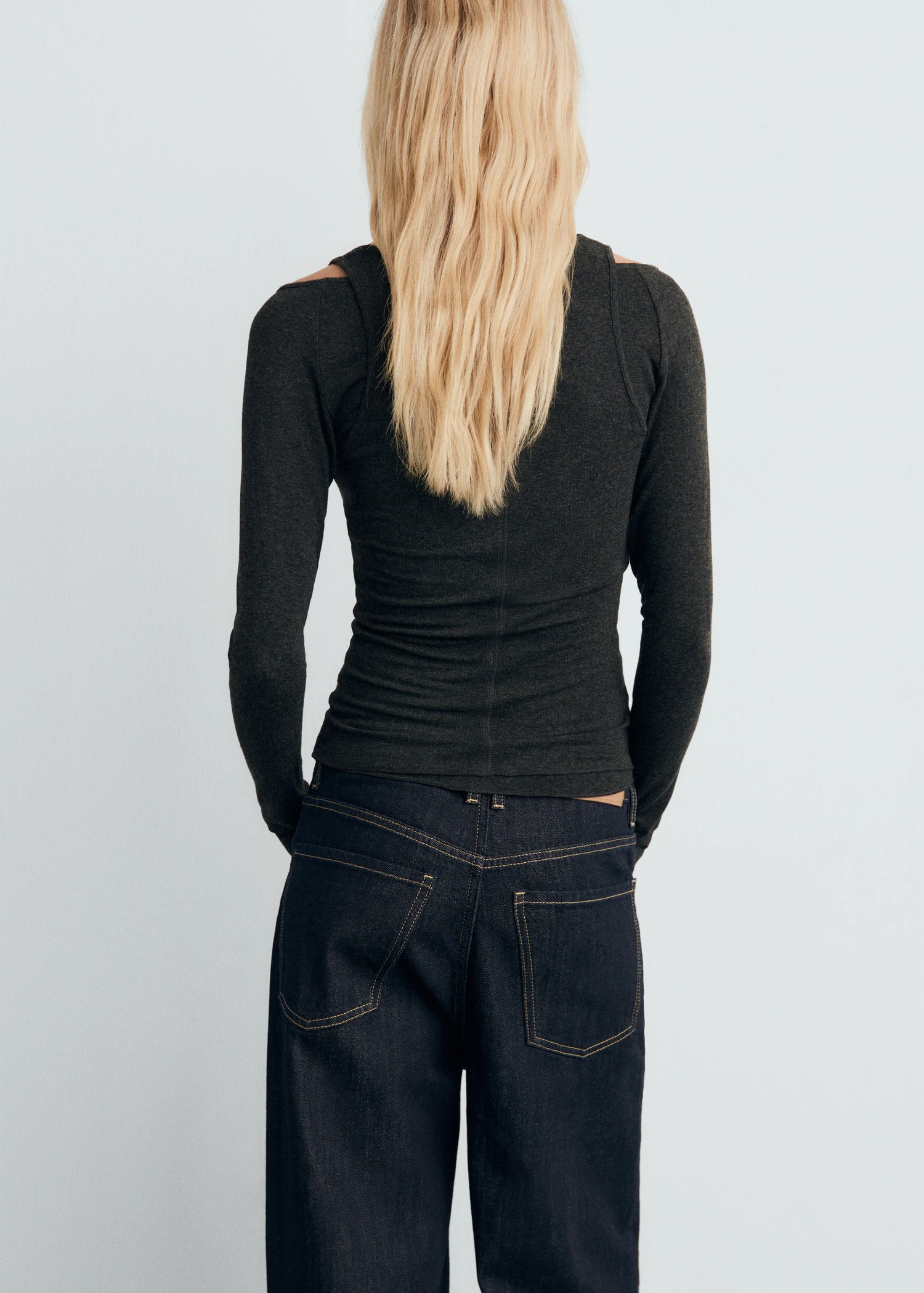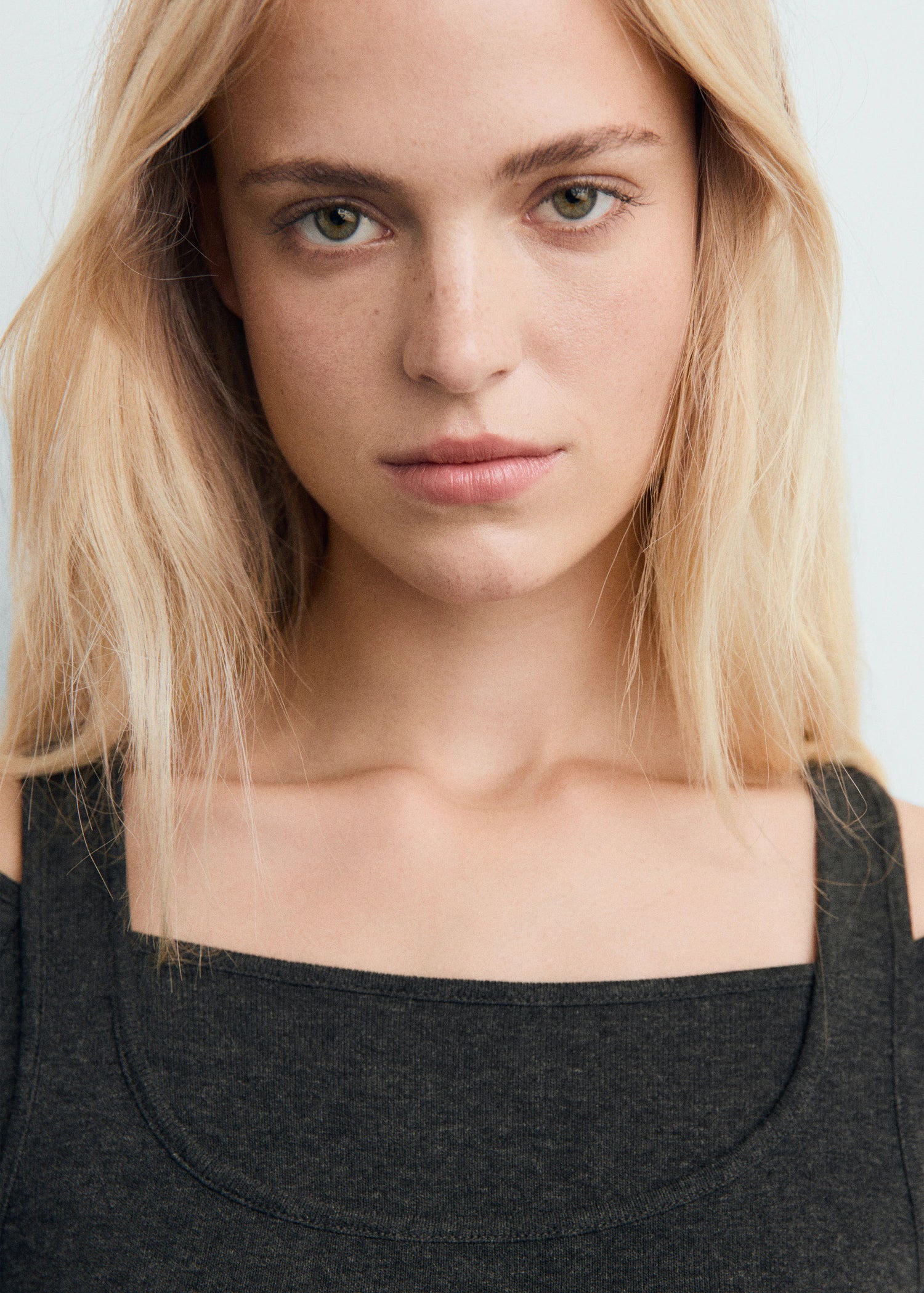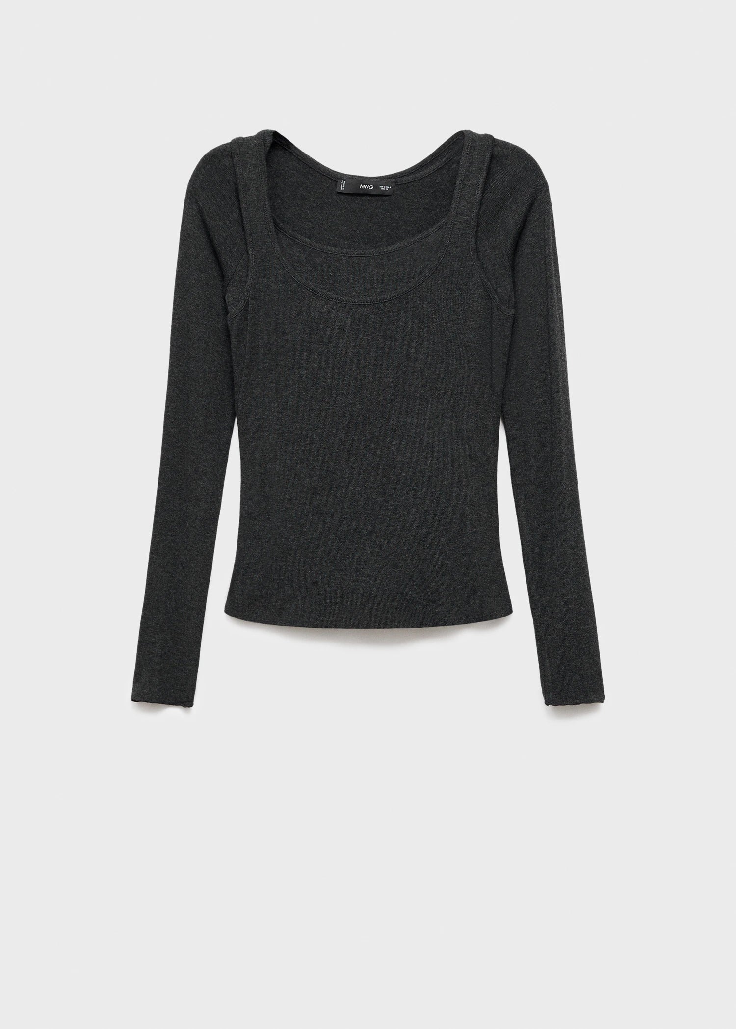 Fine-knit fabric. Fitted design. Combined design. Round neck. Long sleeves. No fastening.
