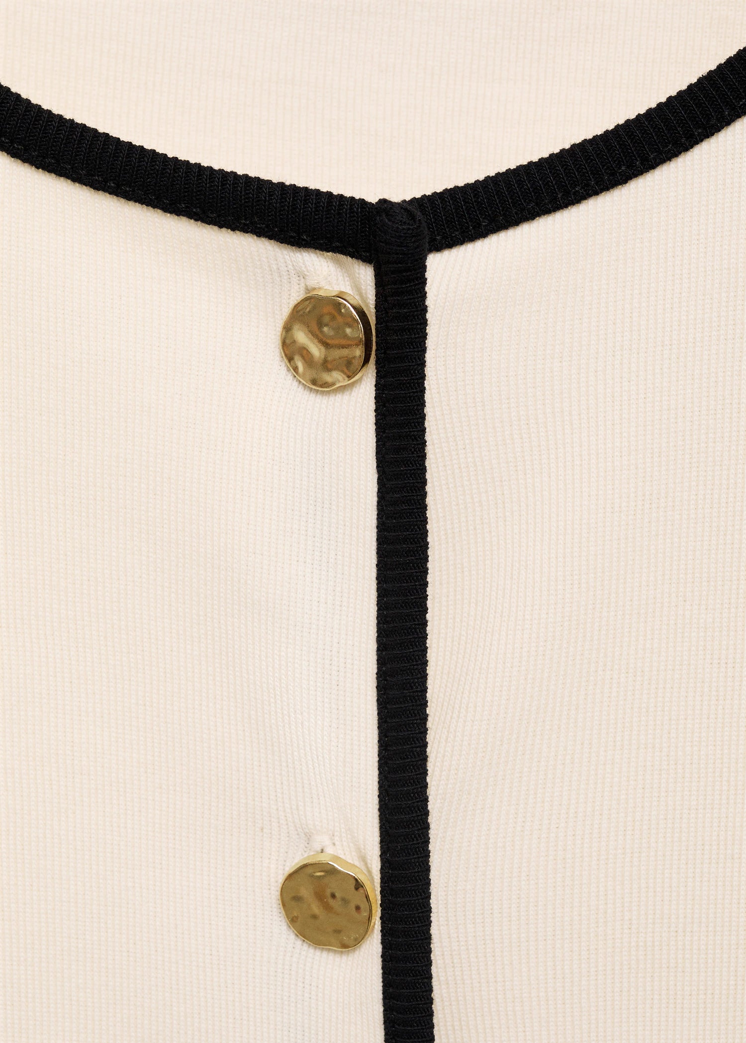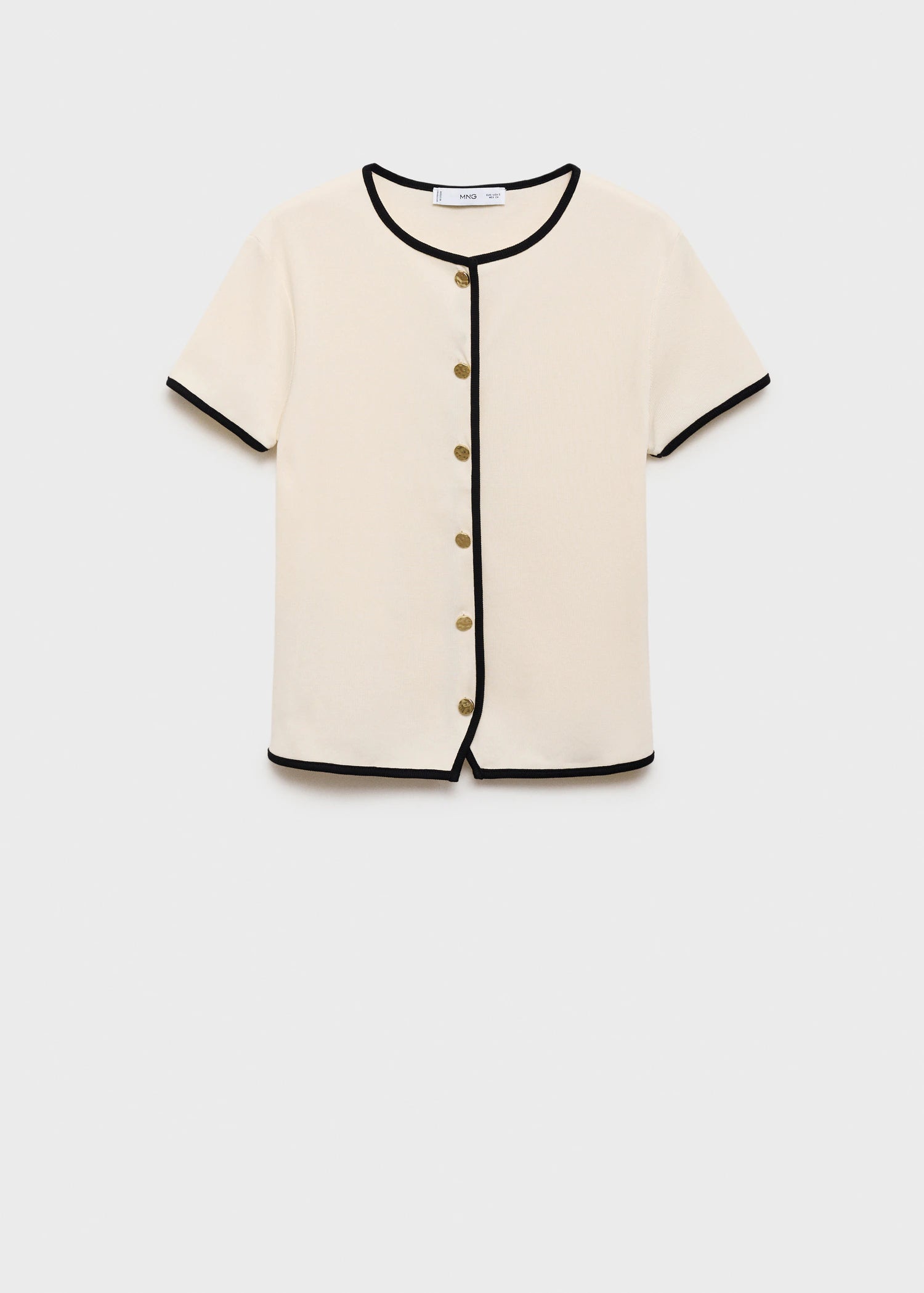 Crafted from 100% cotton fabric, this garment features a fitted design with a round neckline and short sleeves. The contrasting trims give it a distinctive air. Front closure with buttons. The black model is an online exclusive