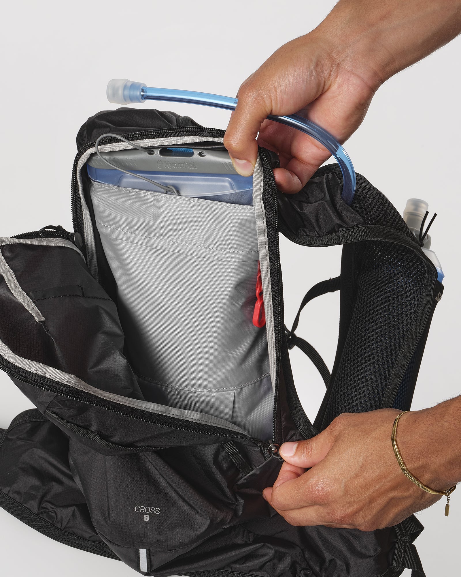Inspired by our iconic trail running packs, the CROSS 8 is ideal for carrying all your essentials when you run ¨C as well as hike, bike and explore. To feel light and fast without being weighed down. This vest alternative combines stability, intuitive adjustments and lightweight comfort. Ready for adventure.