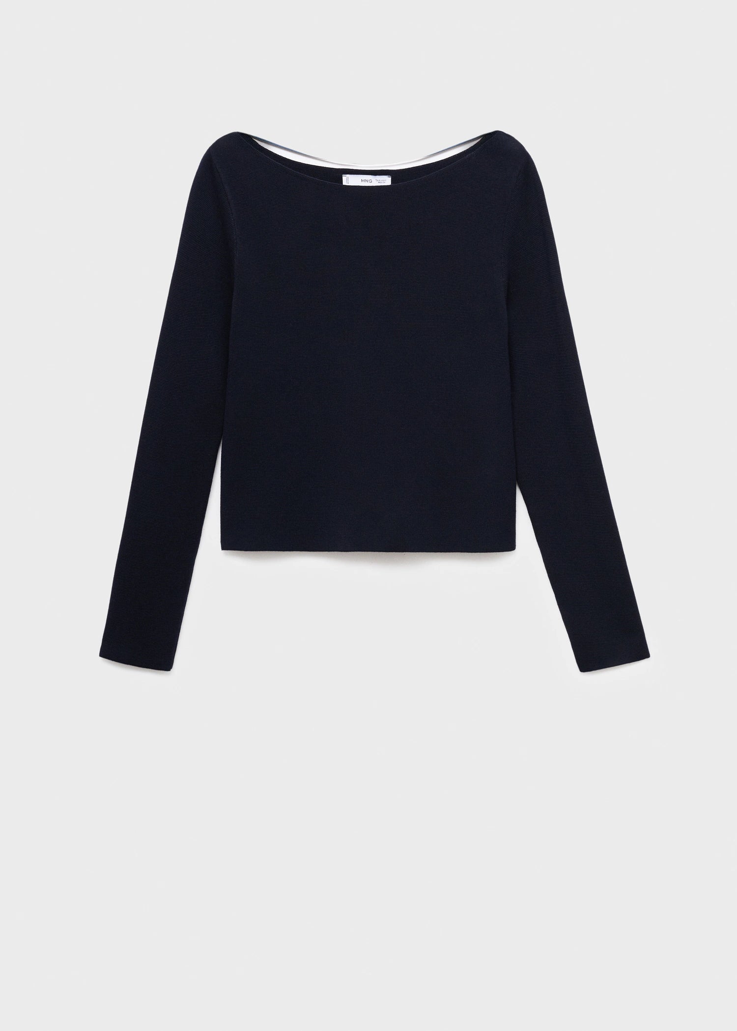 Fine-knit fabric. Straight Design. Boat neck. Long sleeves. No fastening.