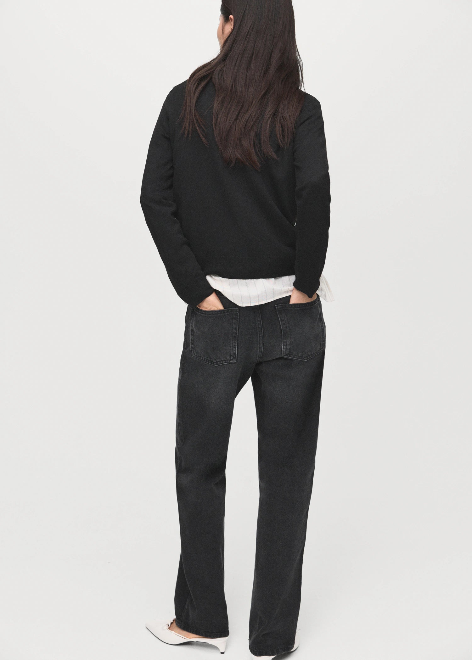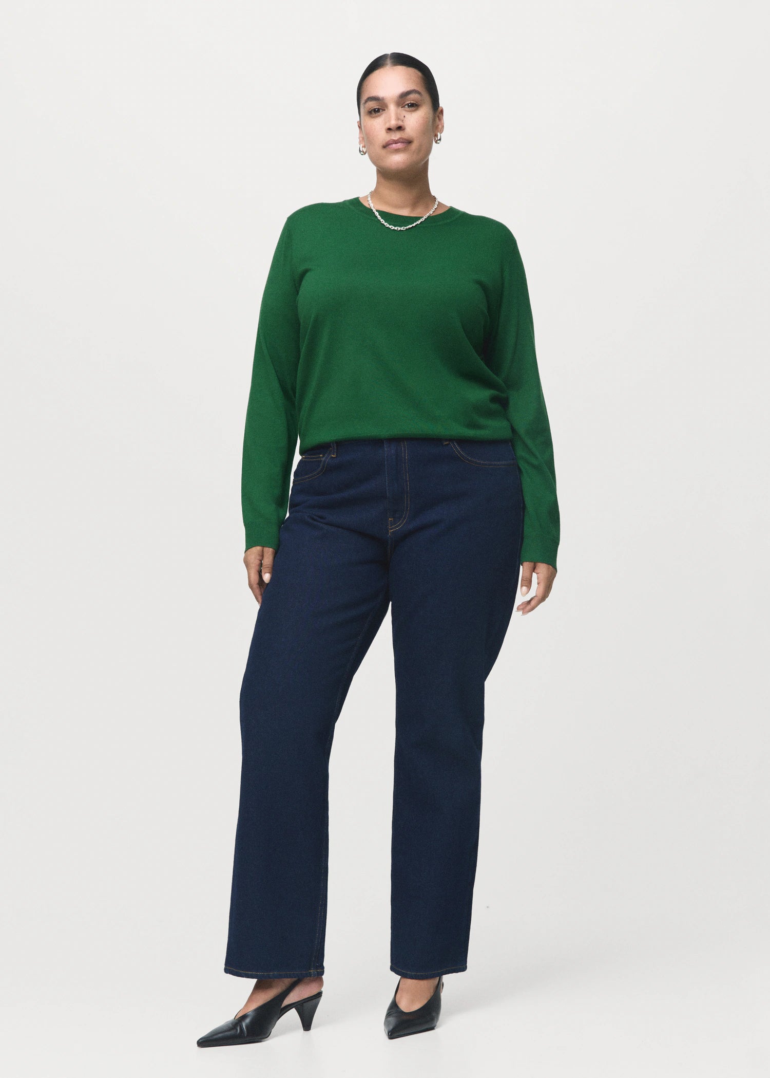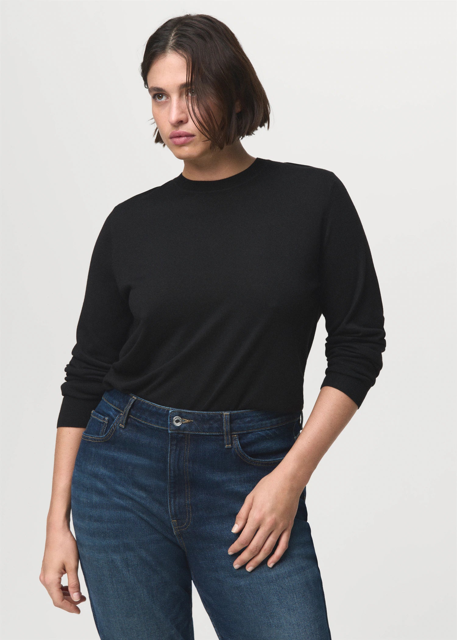 Crafted from fine knit-fabric, this straight design features a box neck and long sleeves