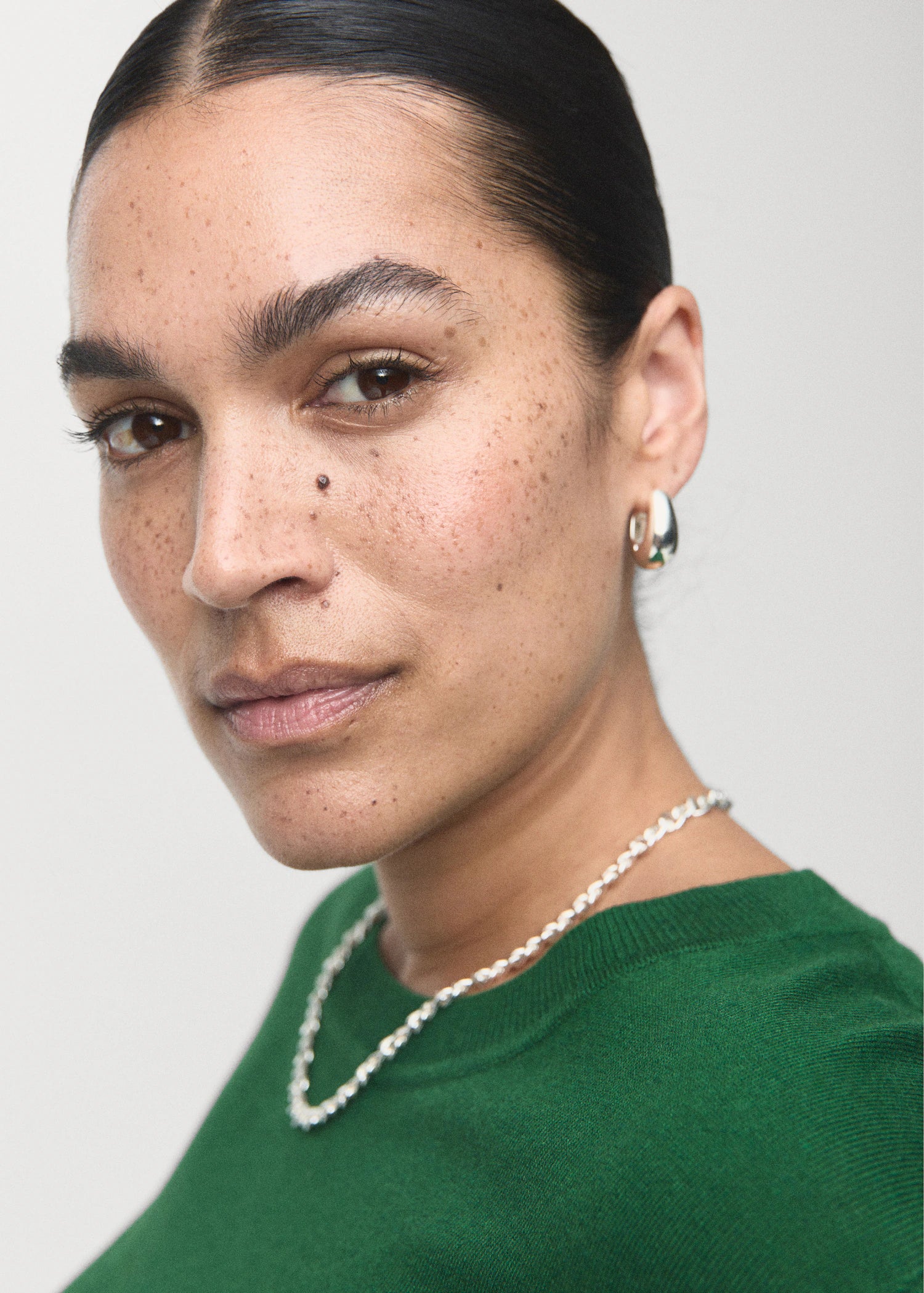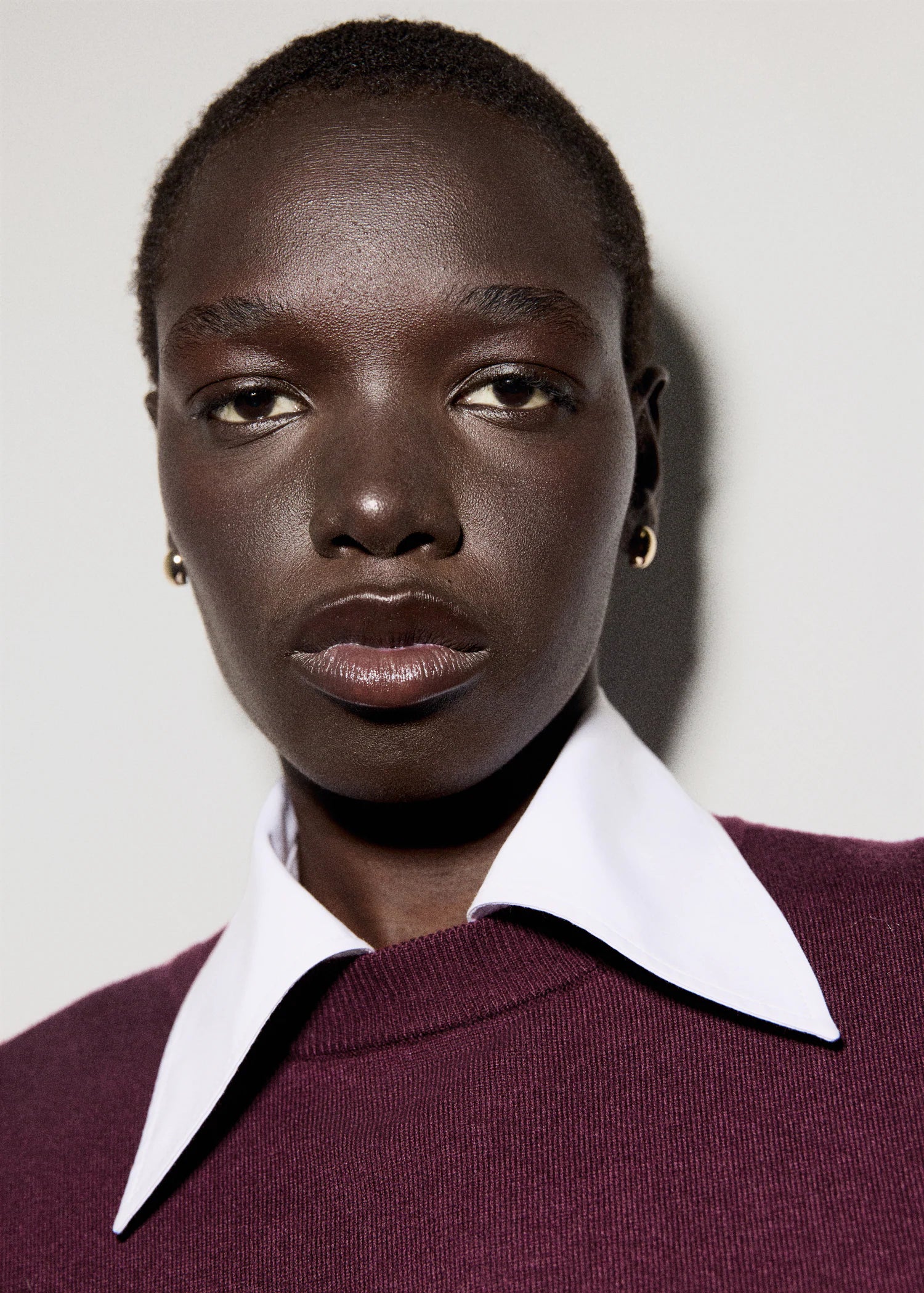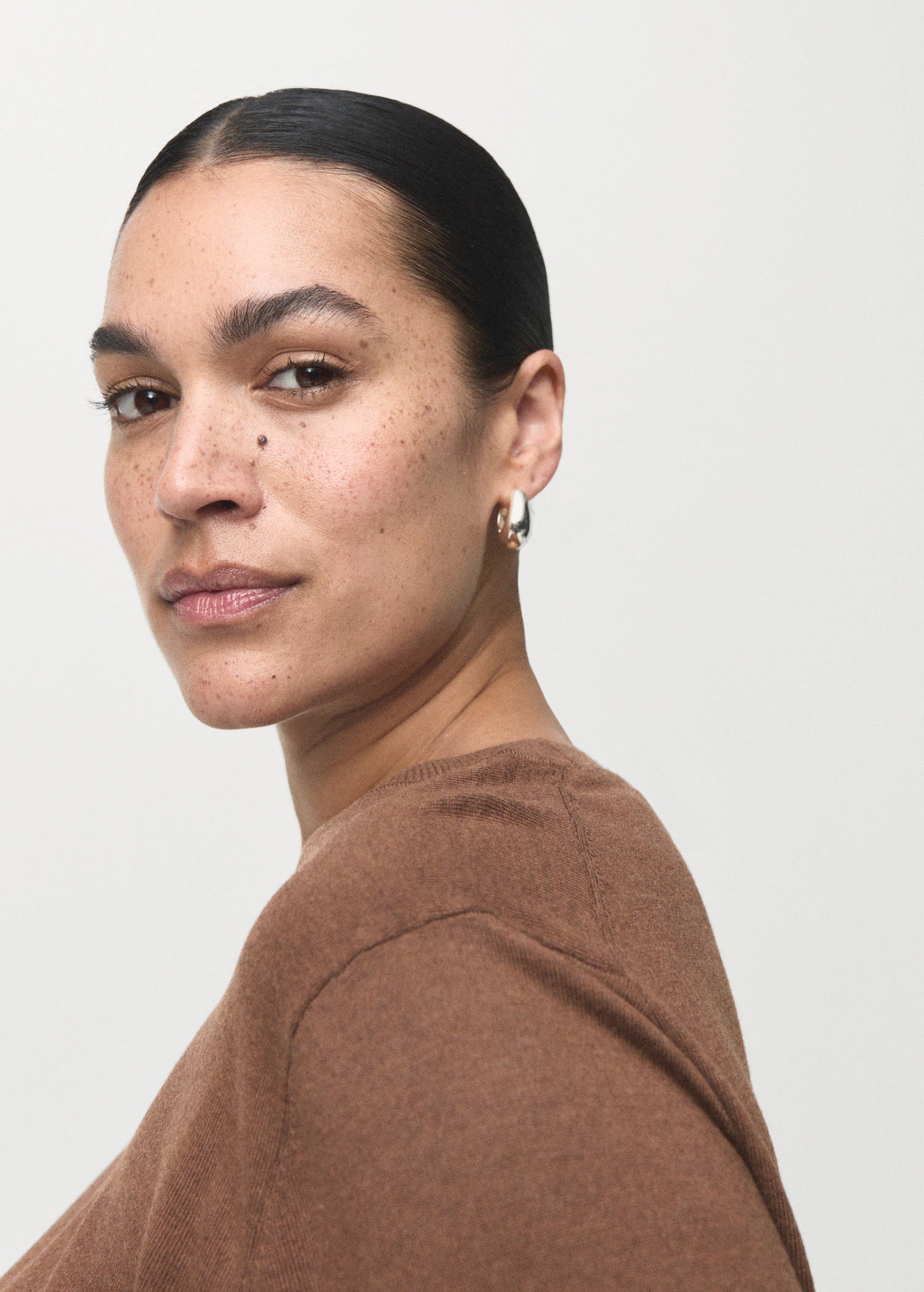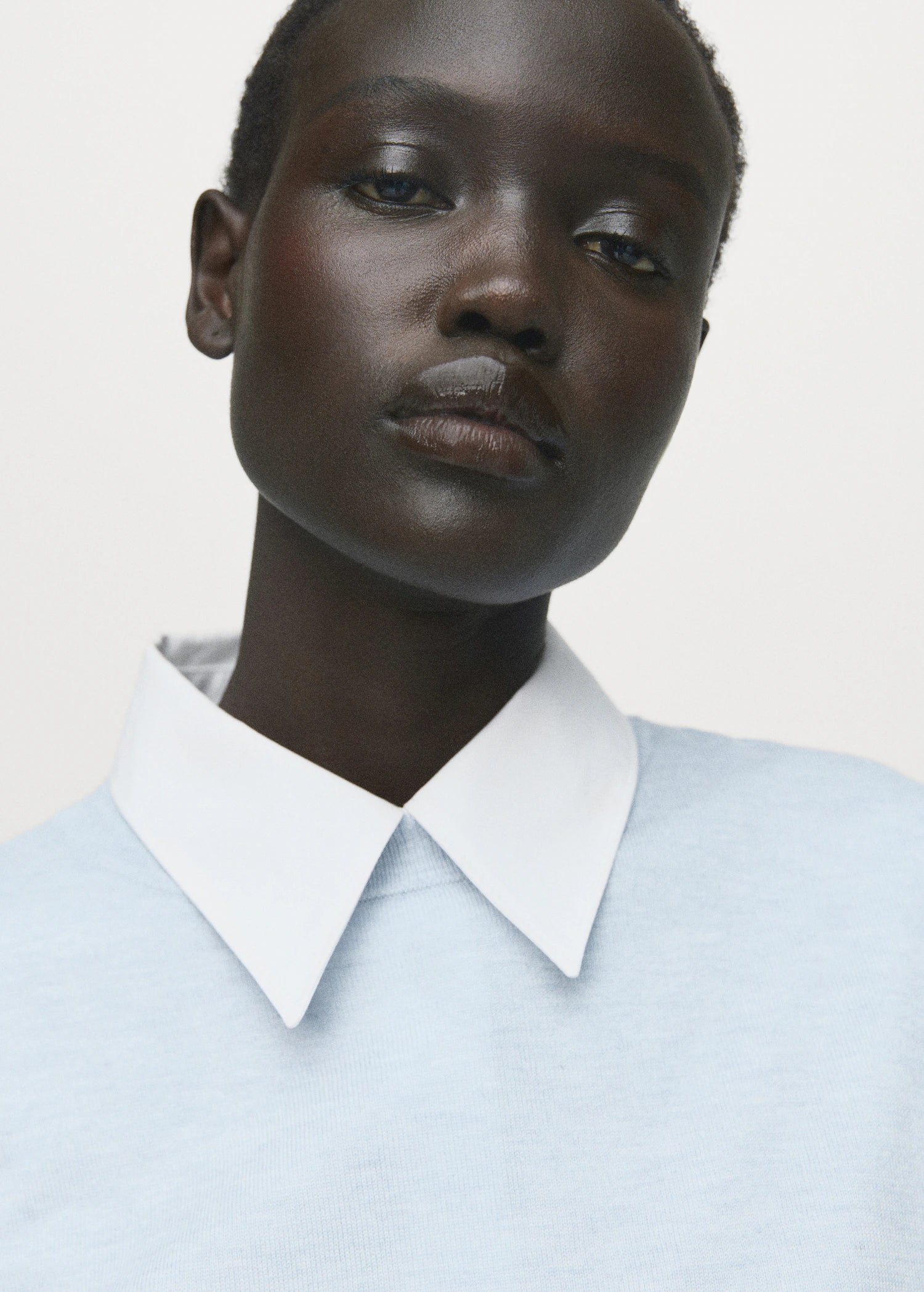 Crafted from fine knit-fabric, this straight design features a box neck and long sleeves