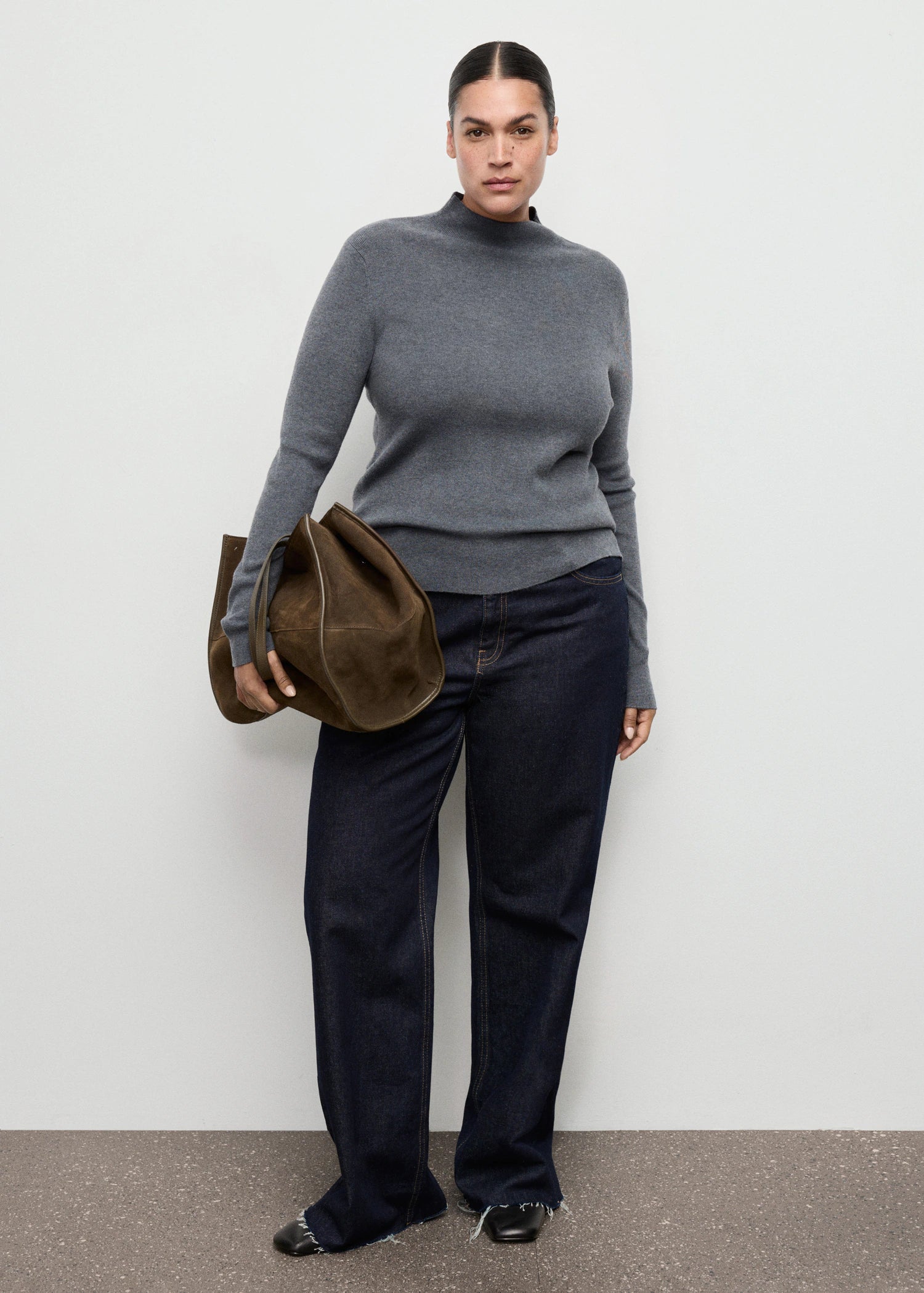 Fine-knit fabric. Fitted design. High collar. Long sleeves. Available Plus.