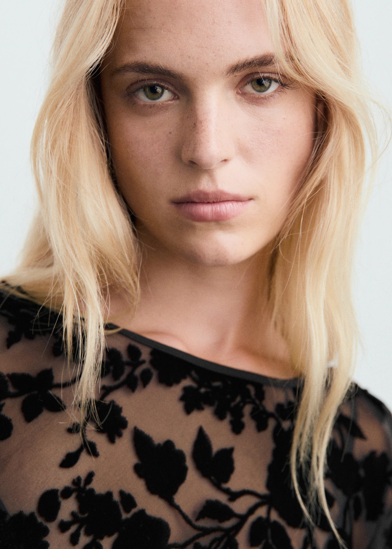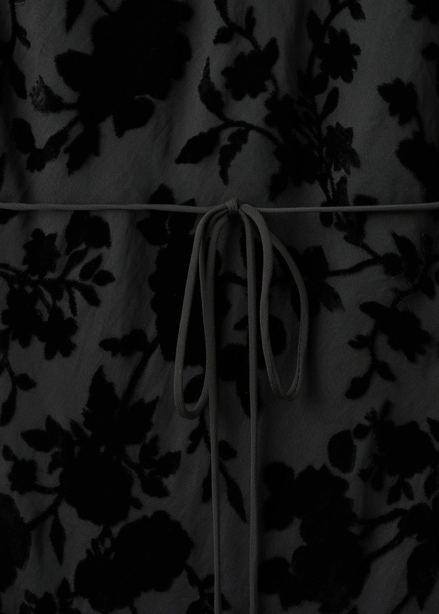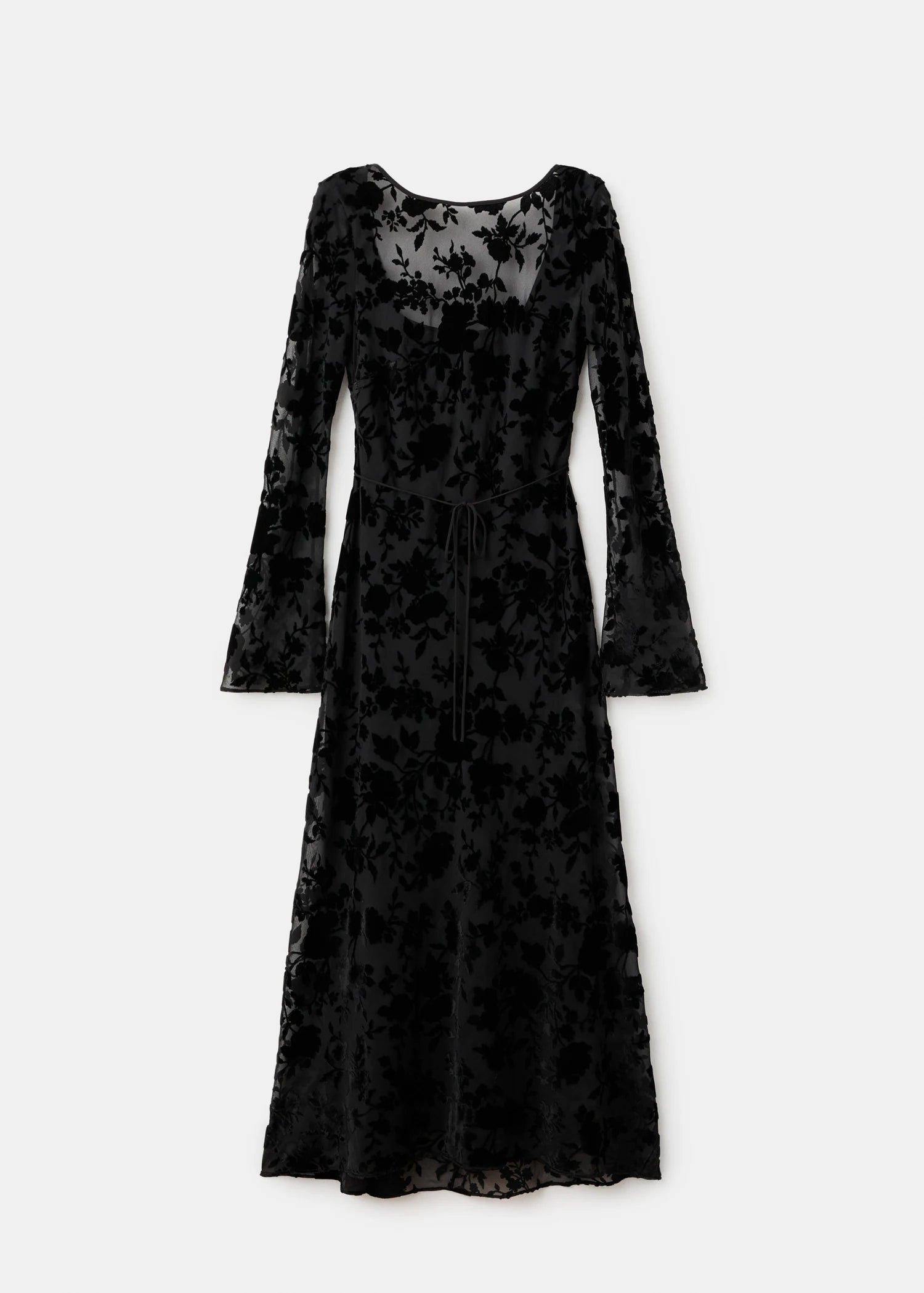 Flowy jacquard fabric. Long design. Straight Design. Boat neck. Back neckline. Long flared sleeve. Adjustable tie. Inner lining. This garment belongs to our event collection, designed to make you the perfect guest at any party, wedding or ceremony. Online Exclusive.