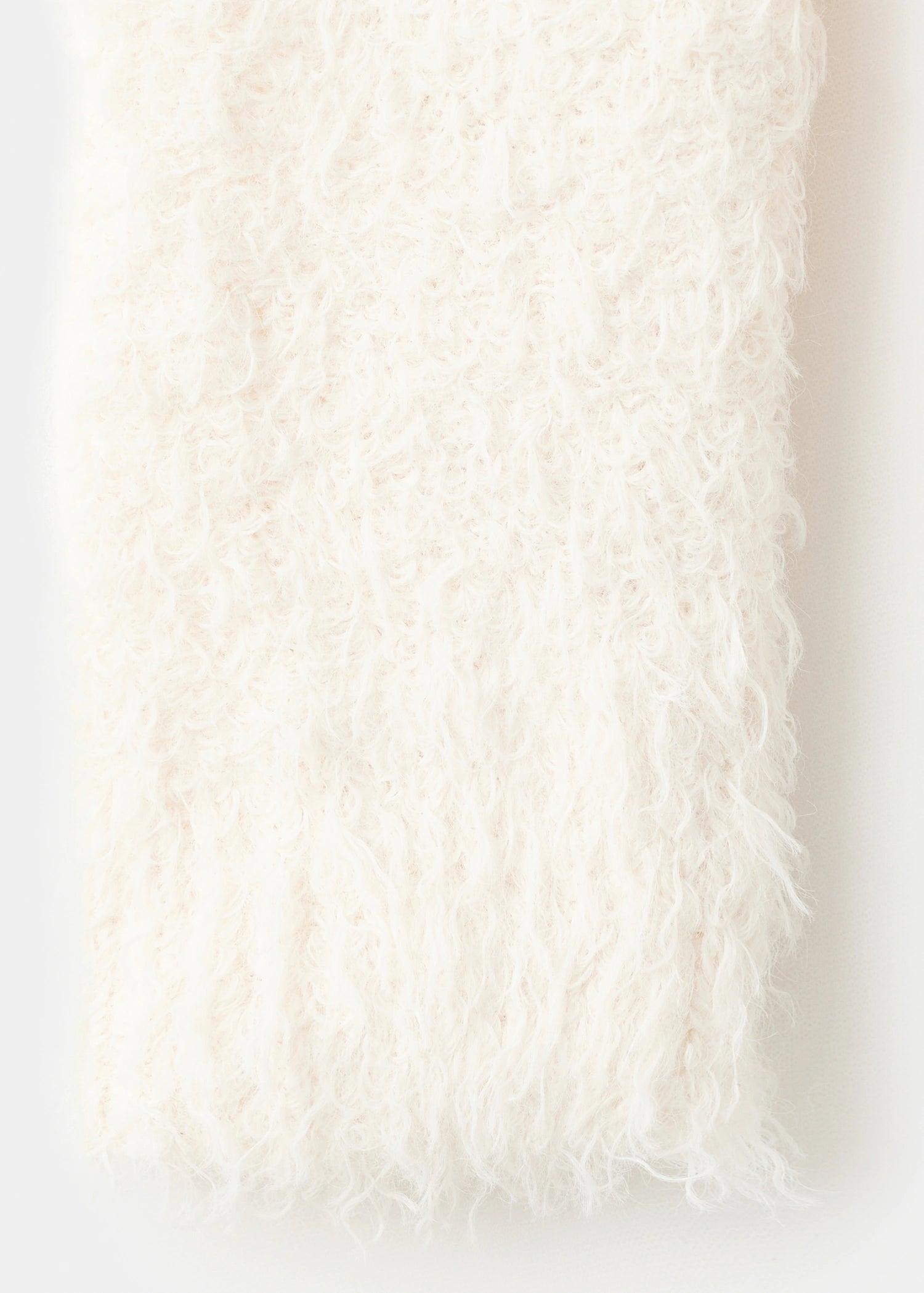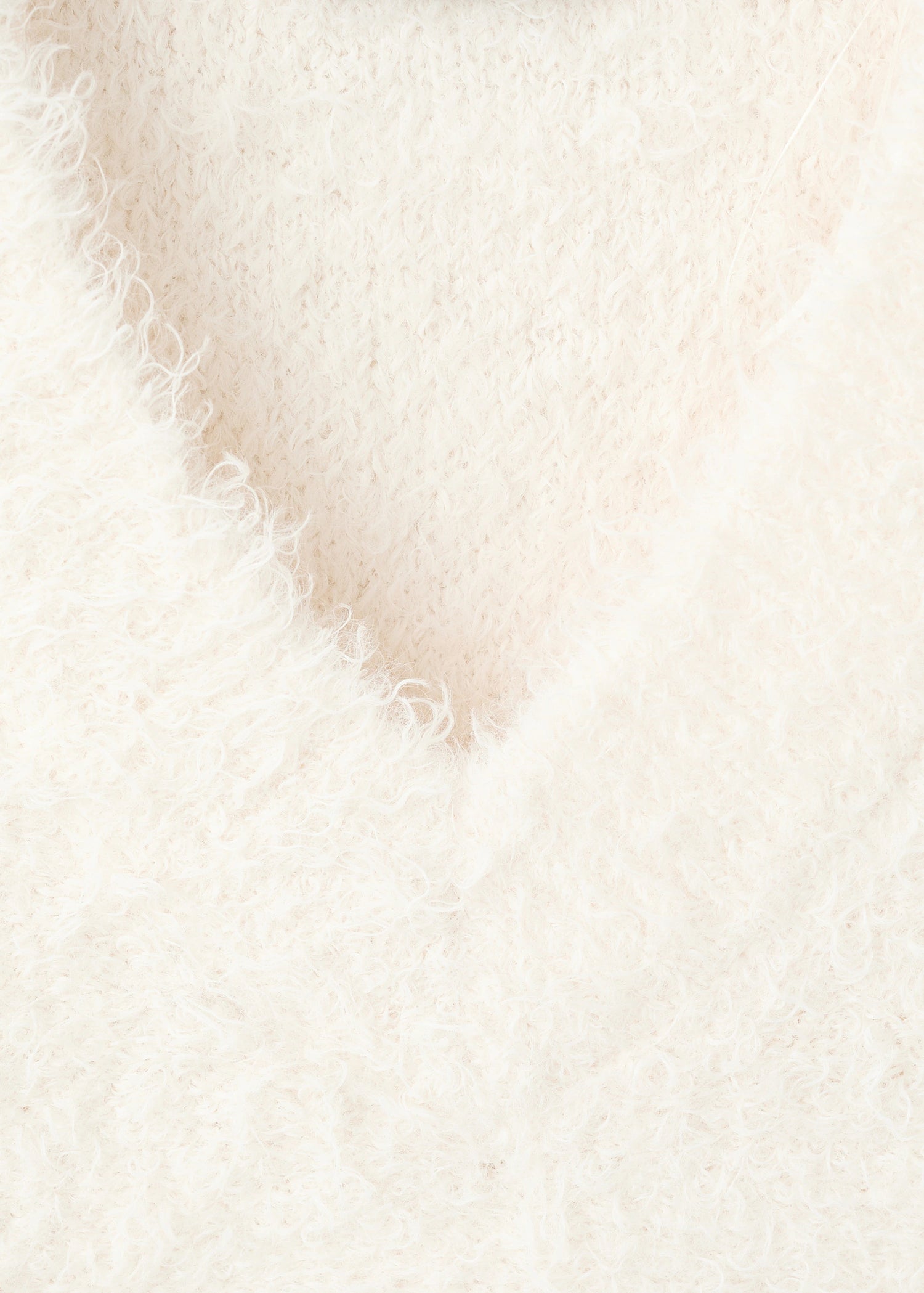 Knitted fabric. Faux fur effect. Straight Design. V-neck. Long sleeves.