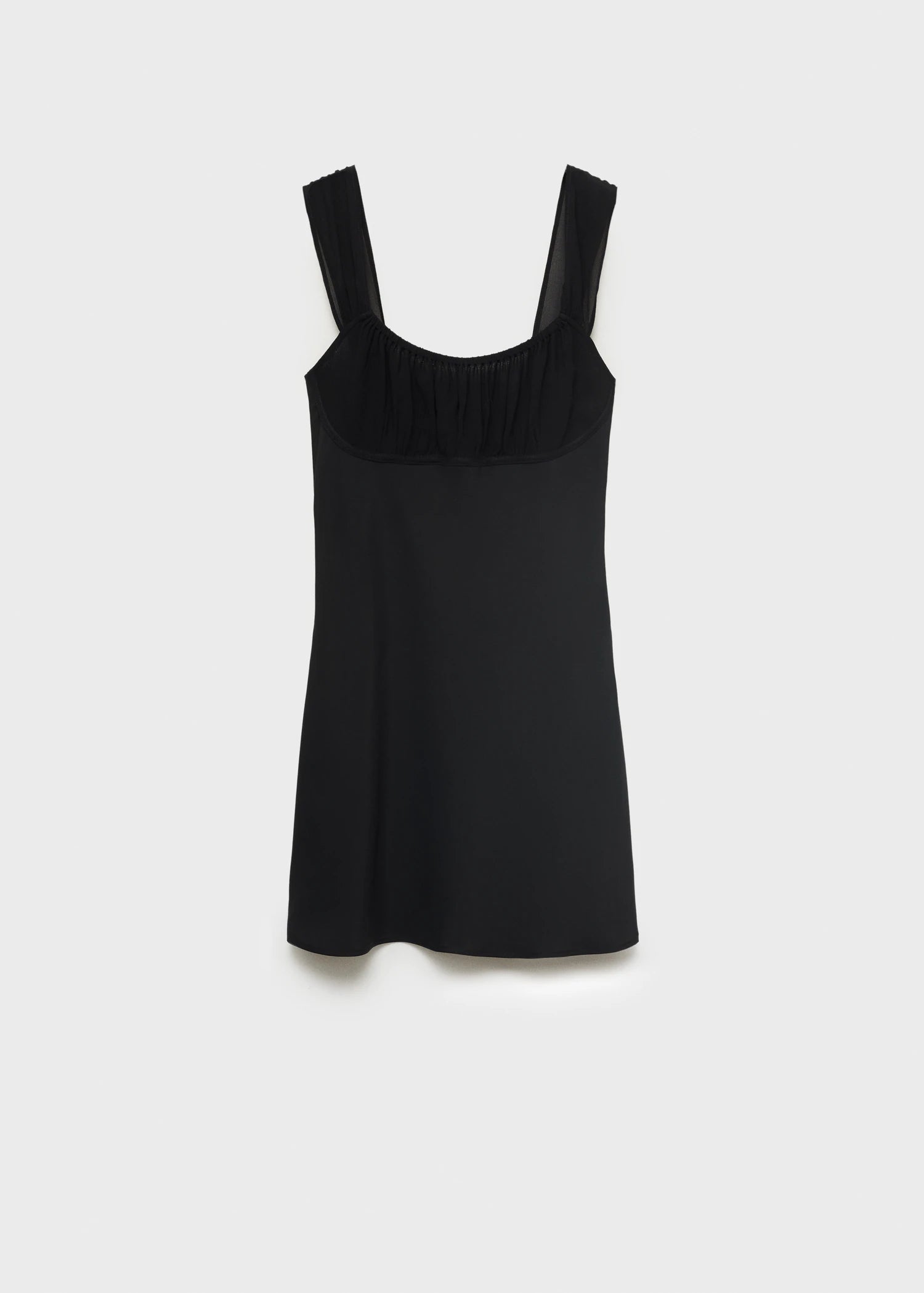 Short design. Straight Design. Low neckline. Runched detail in the neckline. Sleeveless. Wide straps. Side zip closure. Neck lapel Low cut. Lightweight Flat Structure. Long Short. Wide strap. Slim Silhouette. Flat Structure Medium. Lining Filling Only Lining. Side closure. This garment is part of our casual collection, designed to stylishly accompany you in your day-to-day life. Promotional product.