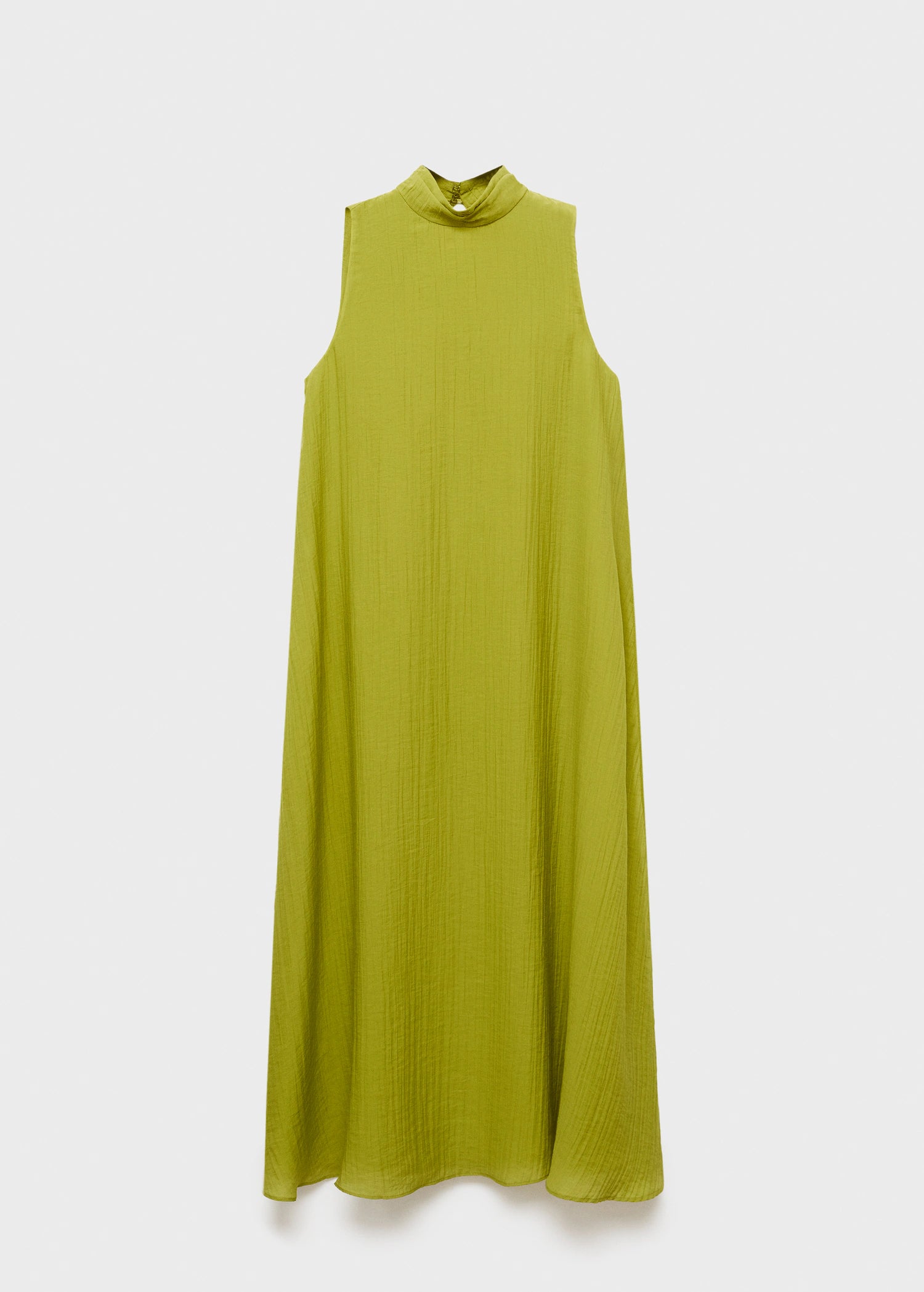 Lyocell fabric. Long design. A-line design. Halter neck. Sleeveless. Wide straps. Side slit. Button fastening at the neck. This garment is part of our casual collection, designed to stylishly accompany you in your day-to-day life.