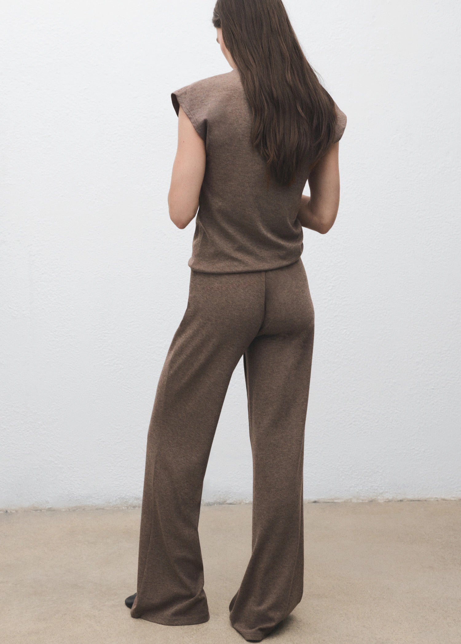 Crafted in knitted fabric, this garment features a straight design with a funnel neck and short sleeves. No fastening. Comes with matching trousers. Available in Plus Size