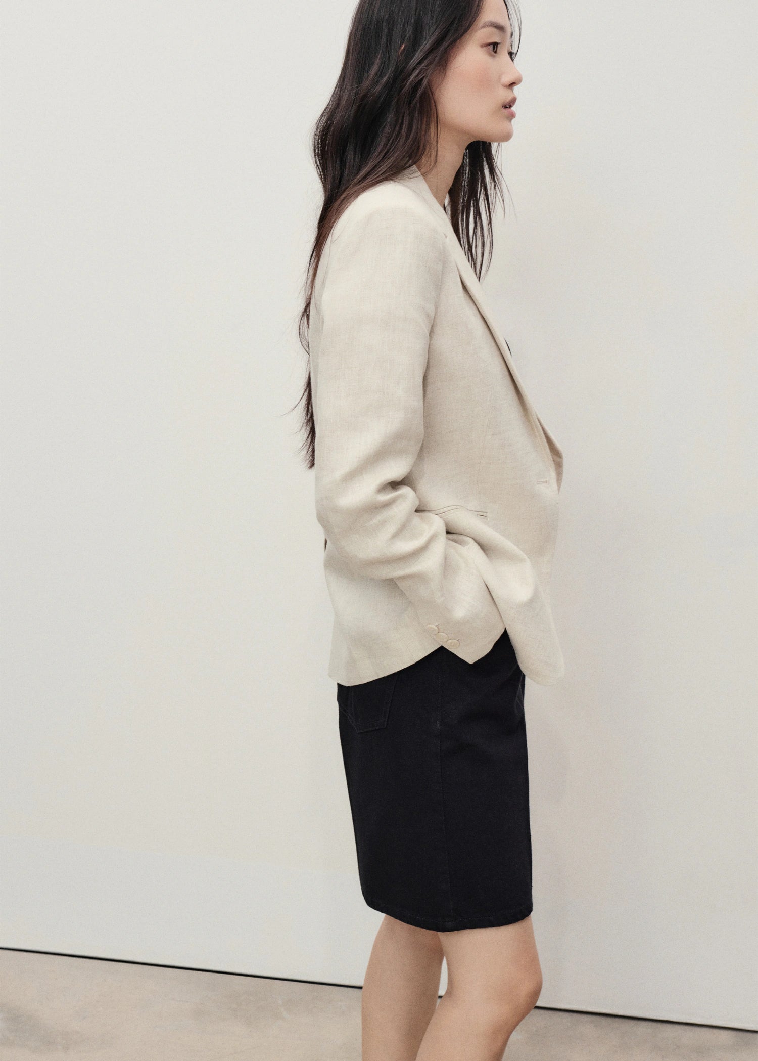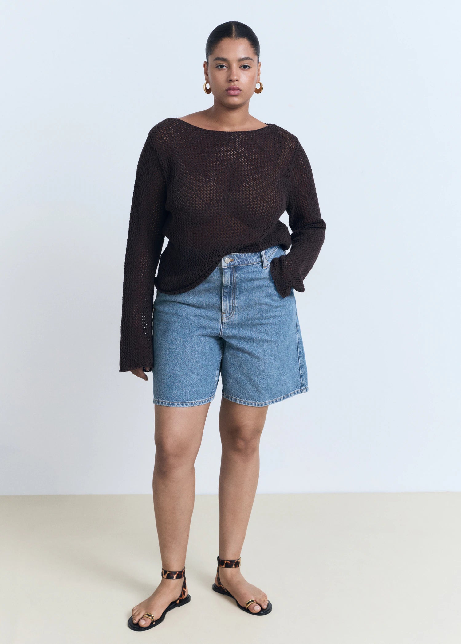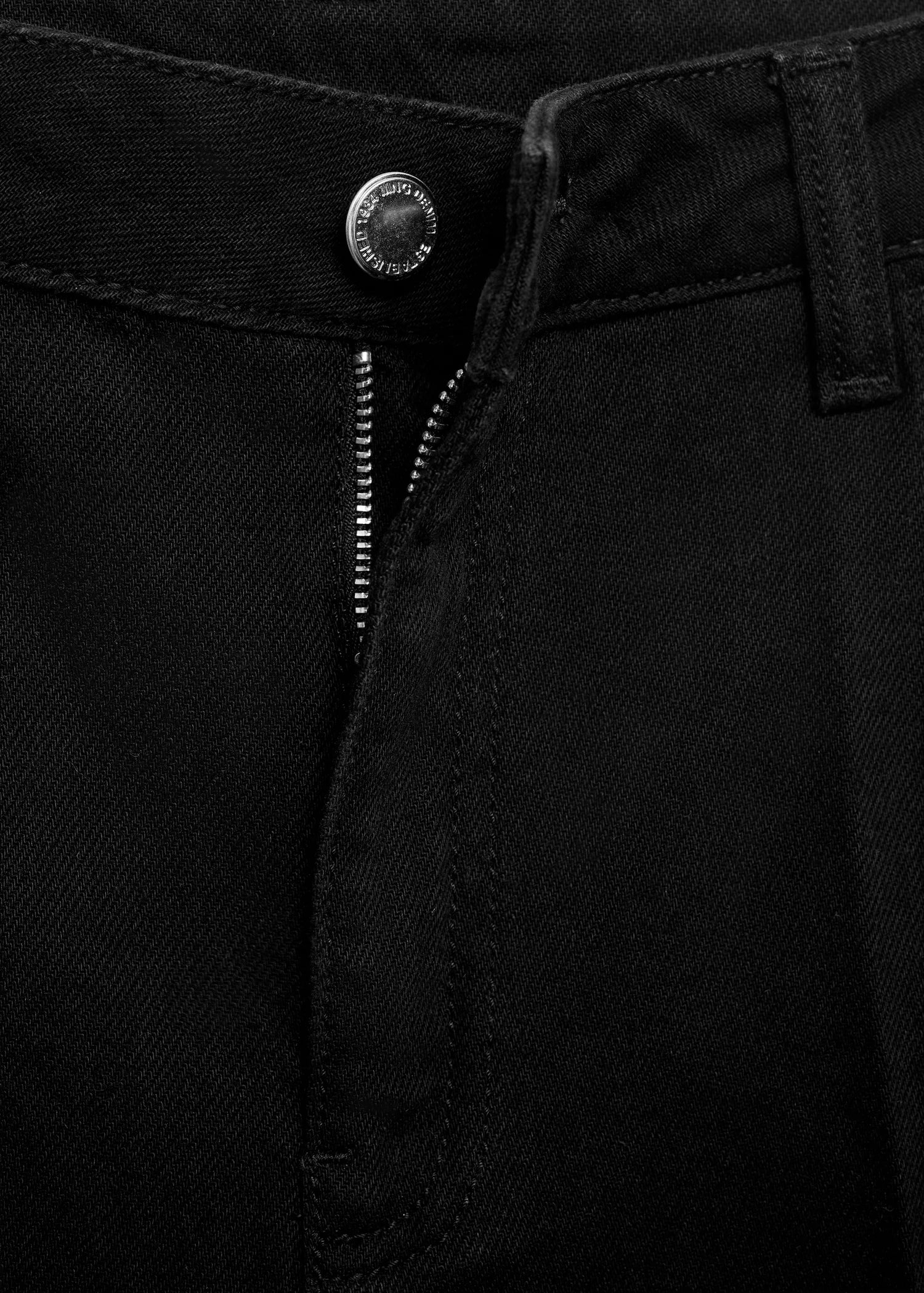 Denim-style cotton fabric. Straight Design. High waist. Belt loops. Five pockets. Front zipper and button closure. Available Plus.