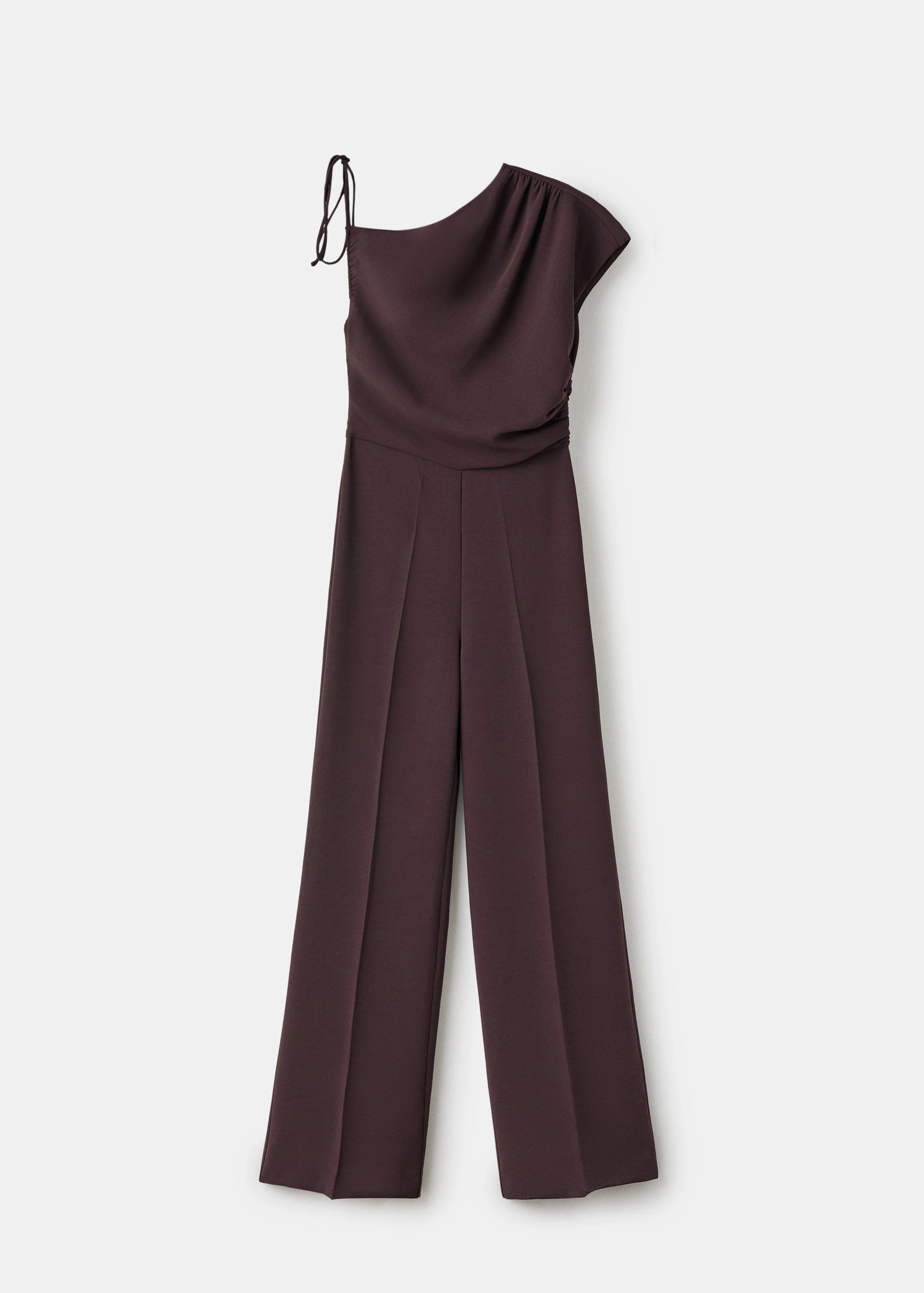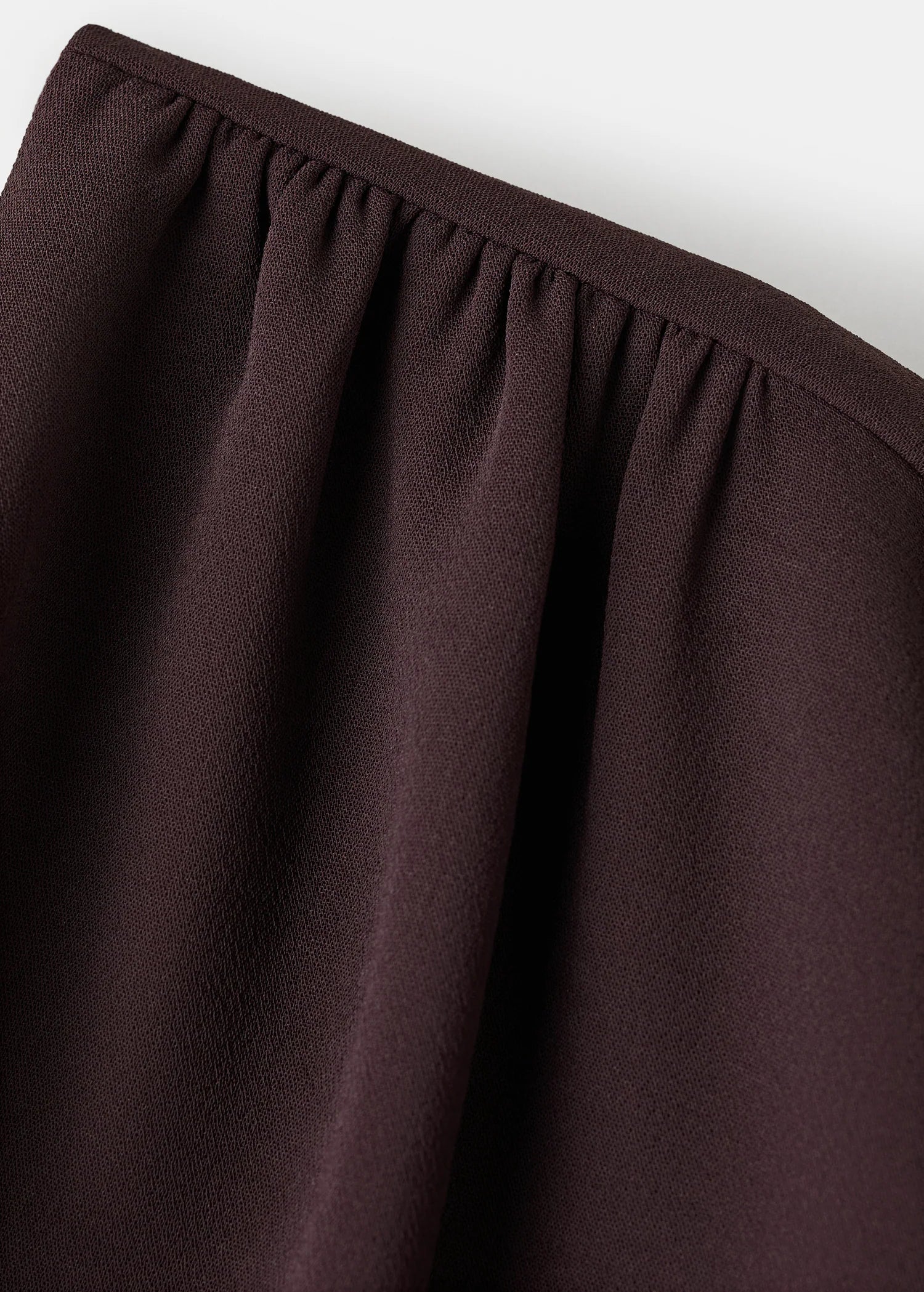 Long design. Straight Design. Asymmetrical neckline. Gathered details. Strap with bow closure. Short sleeves. Side zip closure. Inner lining. This garment belongs to our event collection, designed to make you the perfect guest at any party, wedding or ceremony. Online Exclusive.