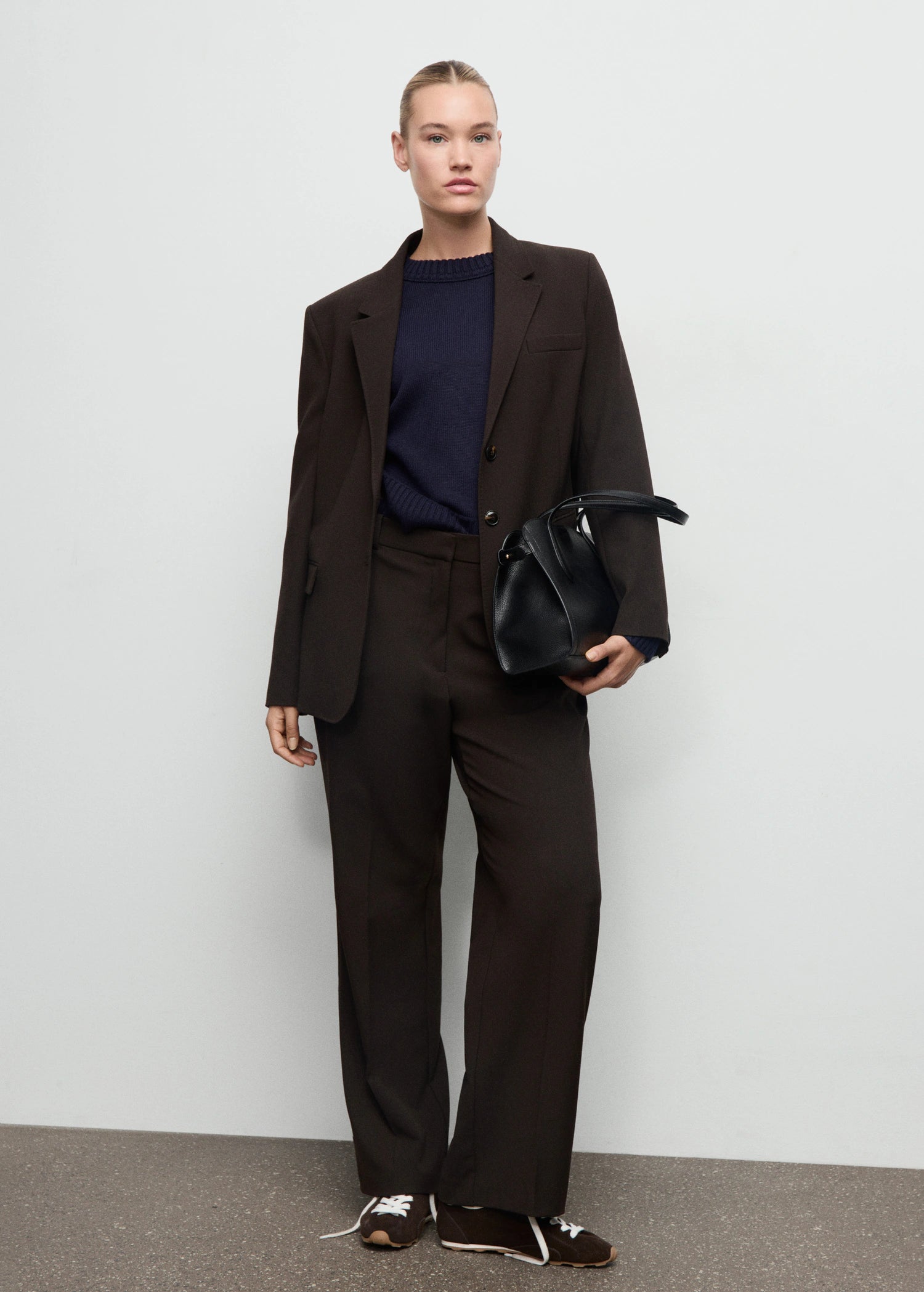 Wool mix fabric. Chunky knit fabric. Straight Design. Round neck. Long sleeves. Ribbed finishes. Button detail on the shoulder. Jewel-effect buttons. No Fastening. Available Plus.