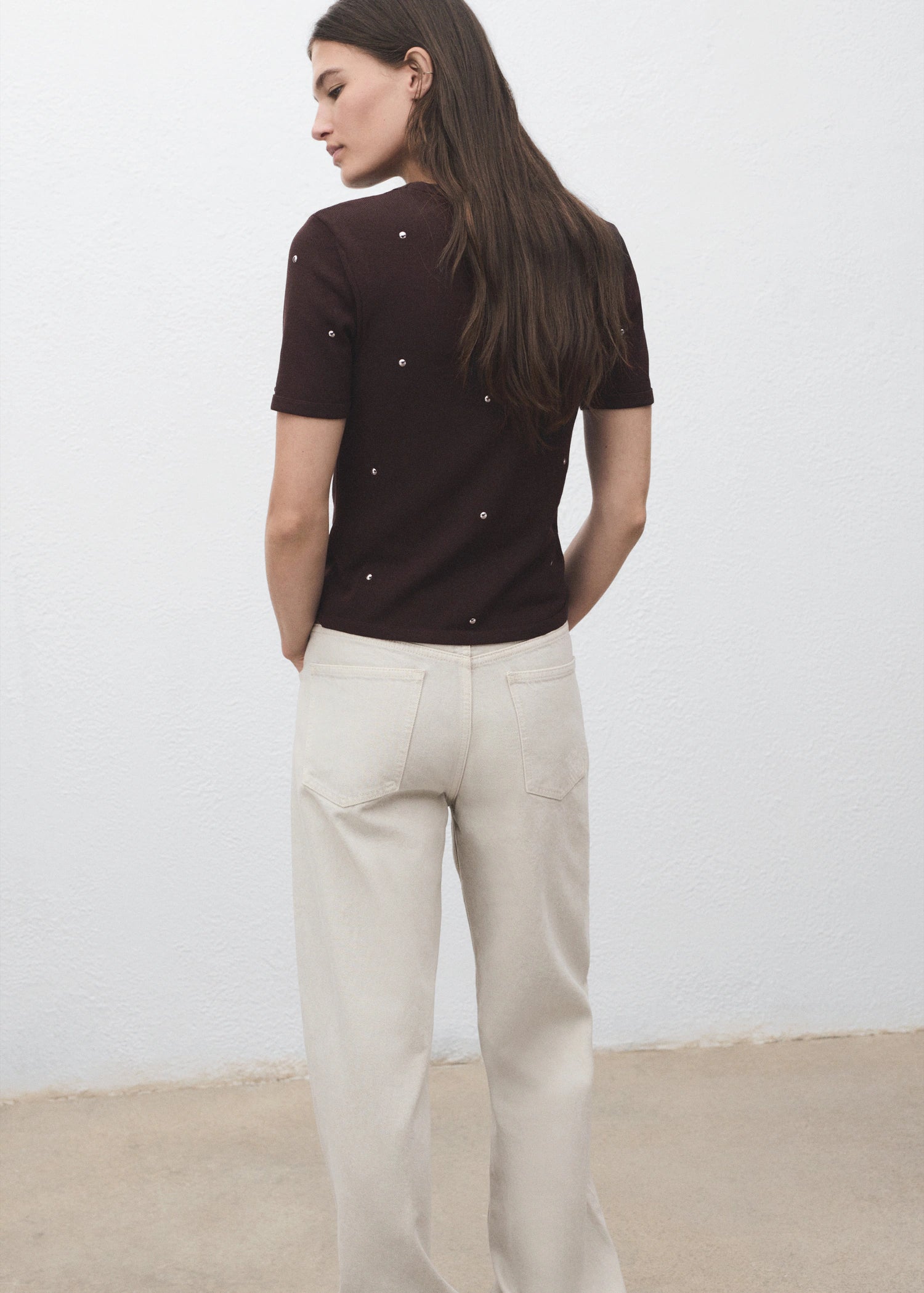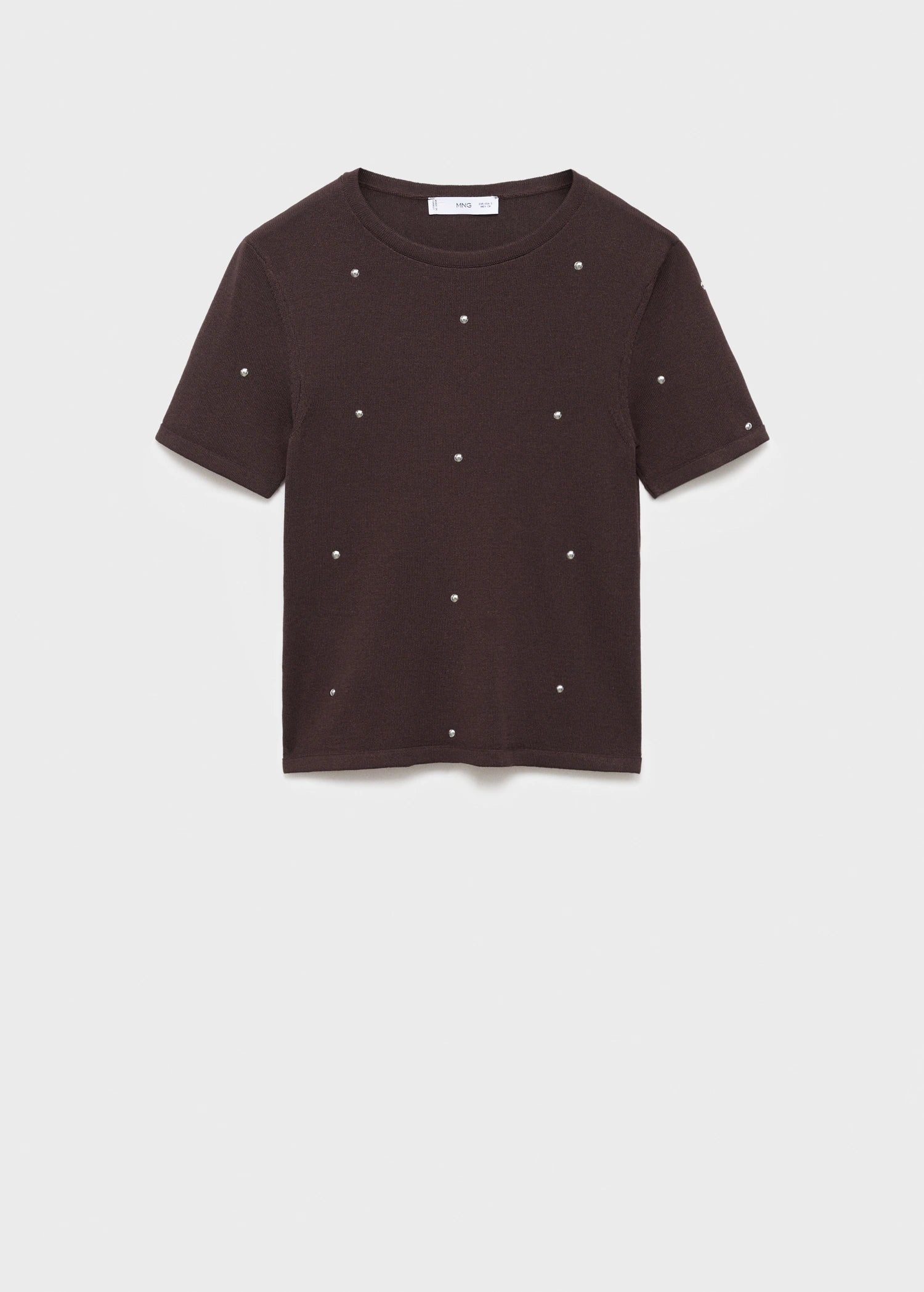 Crafted from a fine knitted fabric, this fitted design features a comfortable crew neck and short sleeves. The rhinestone detail adds a distinctive touch
