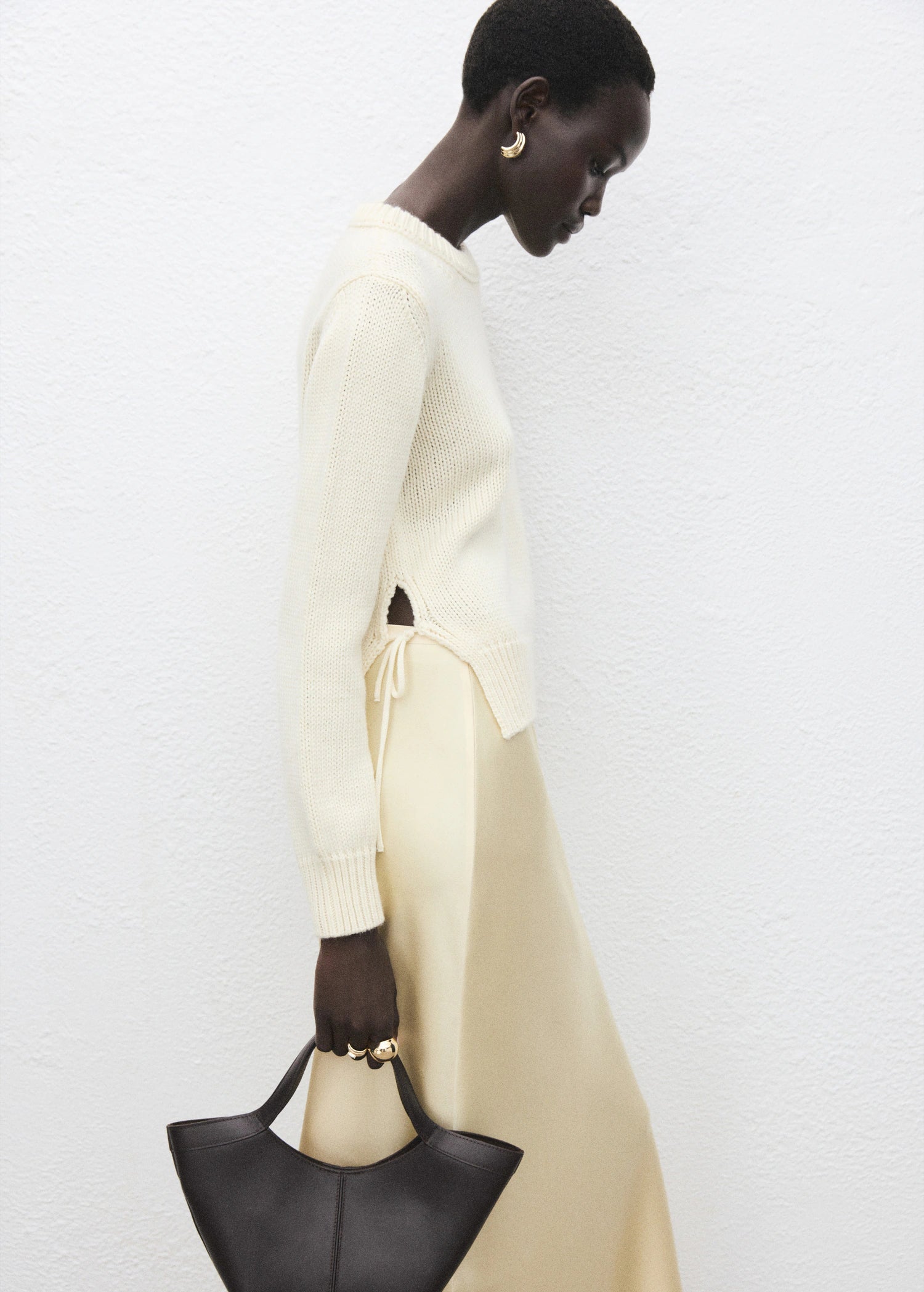Knitted Sweater With Tie Slits