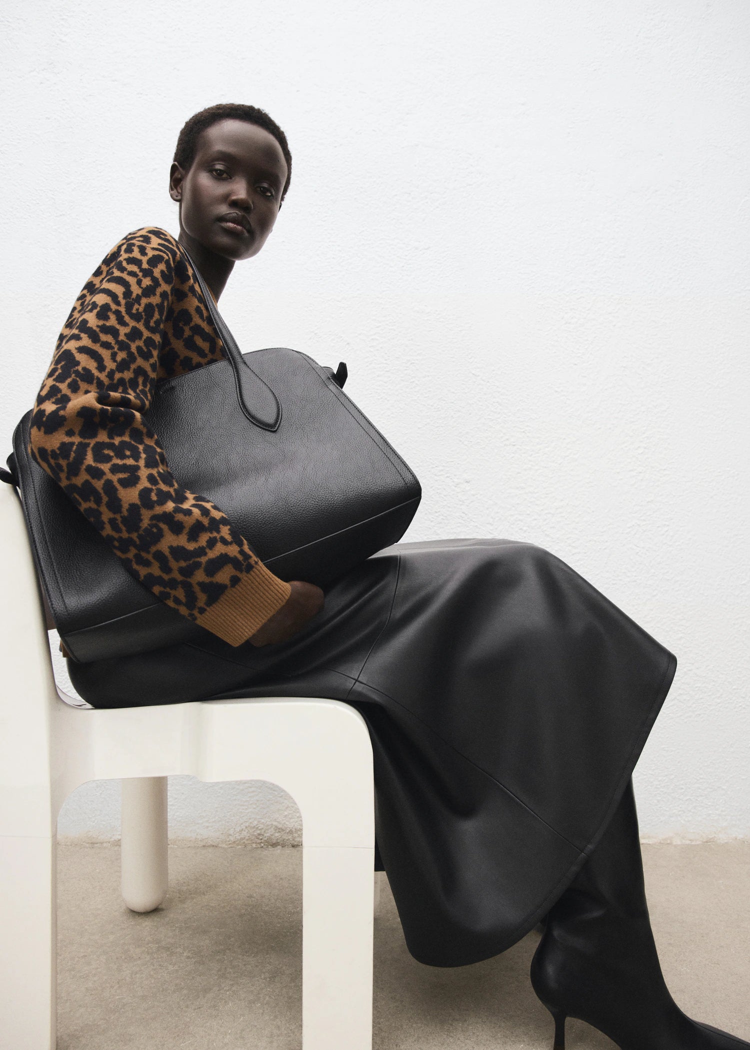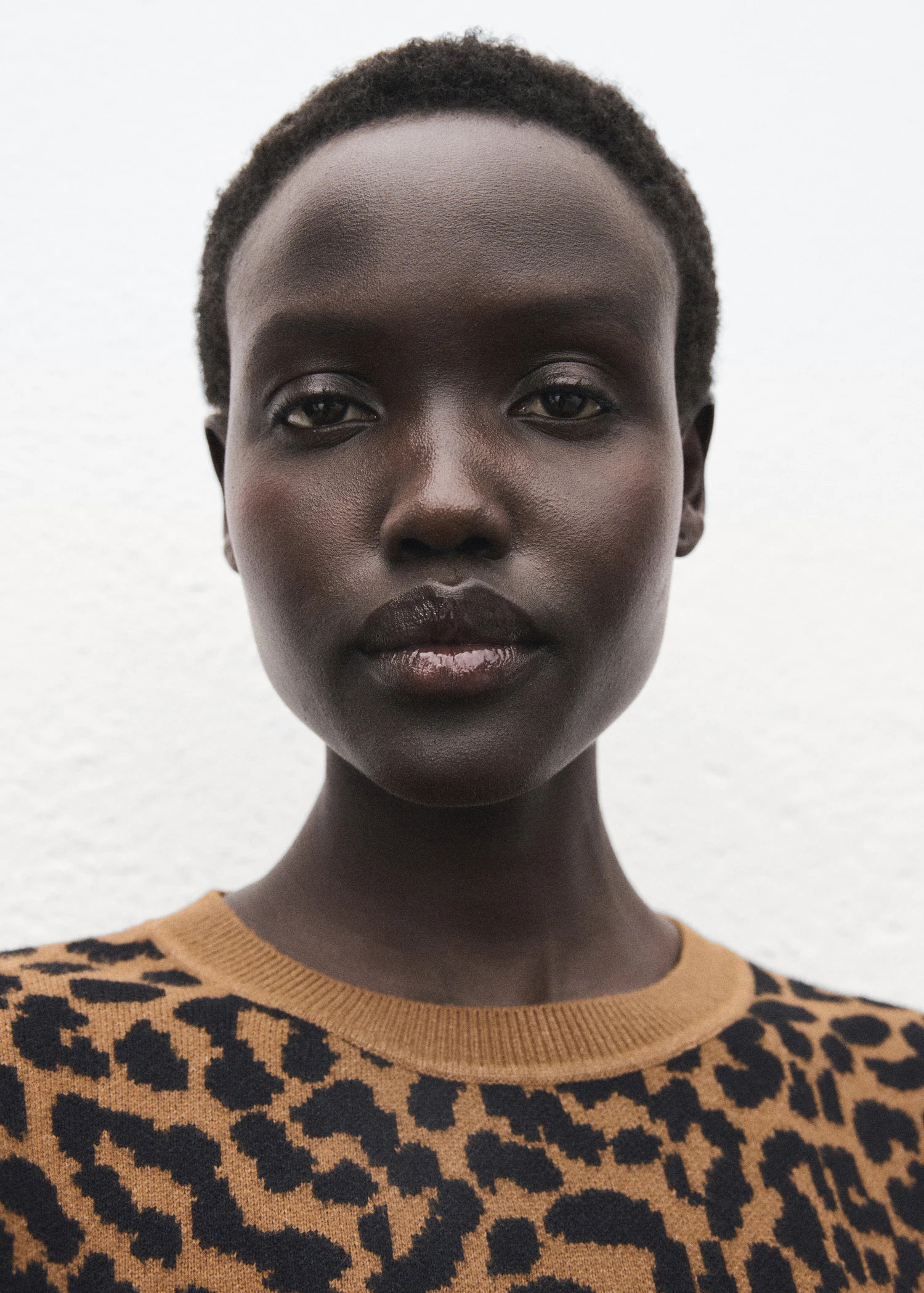 Crafted from fine-knit fabric, this design features a leopard print. It has a round neckline and long sleeves. Available in Plus Size