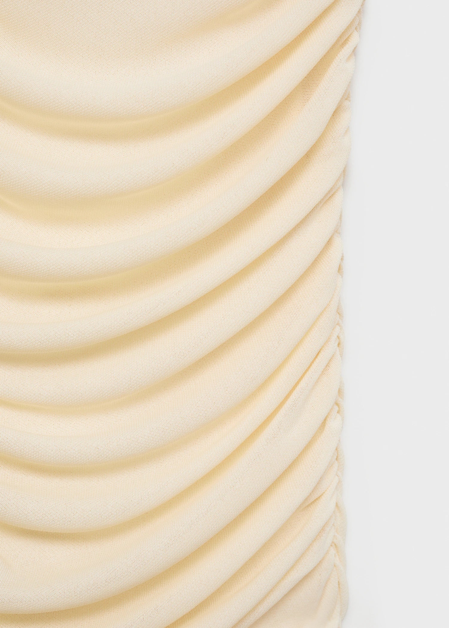 Long design. Straight Design. V-neckline. Long sleeves. Draped details. This garment belongs to our event collection, designed to make you the perfect guest at any party, wedding or ceremony.