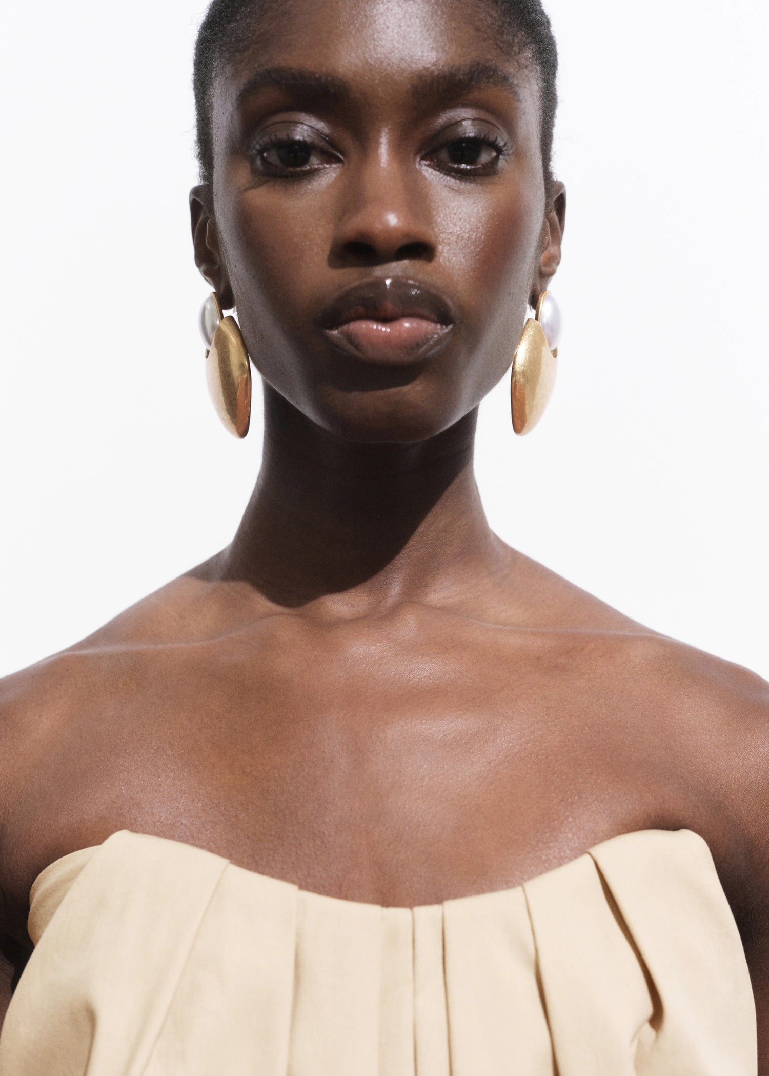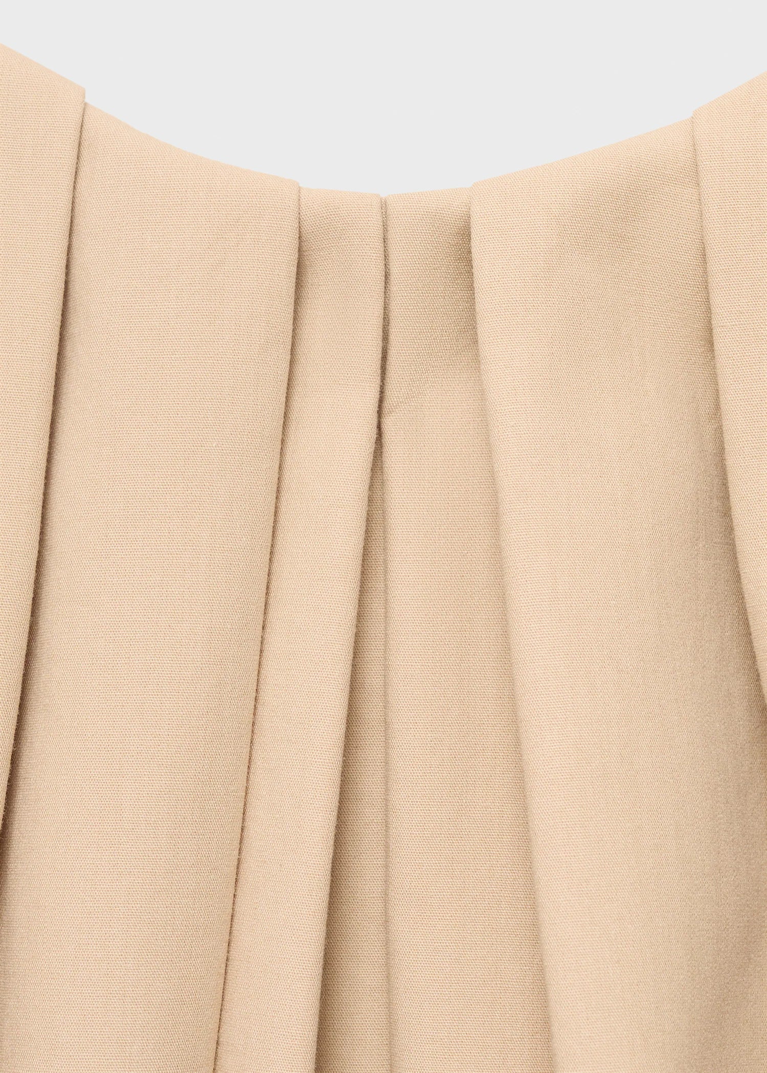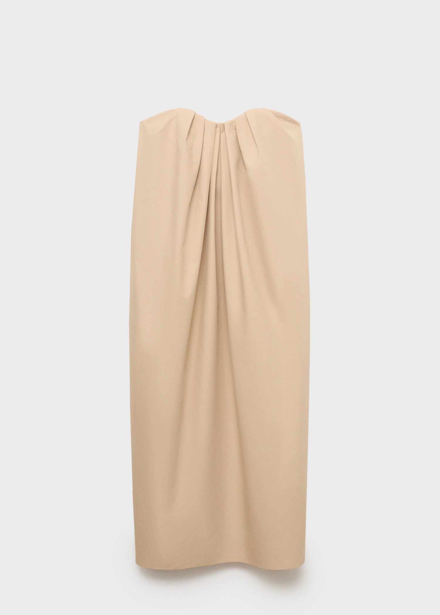 100% cotton fabric. Long design. Straight Design. Strapless. Sweetheart neckline. Pleats detail. Two side pockets. Back-slit hem. Zip fastening on the back section. Inner lining.
