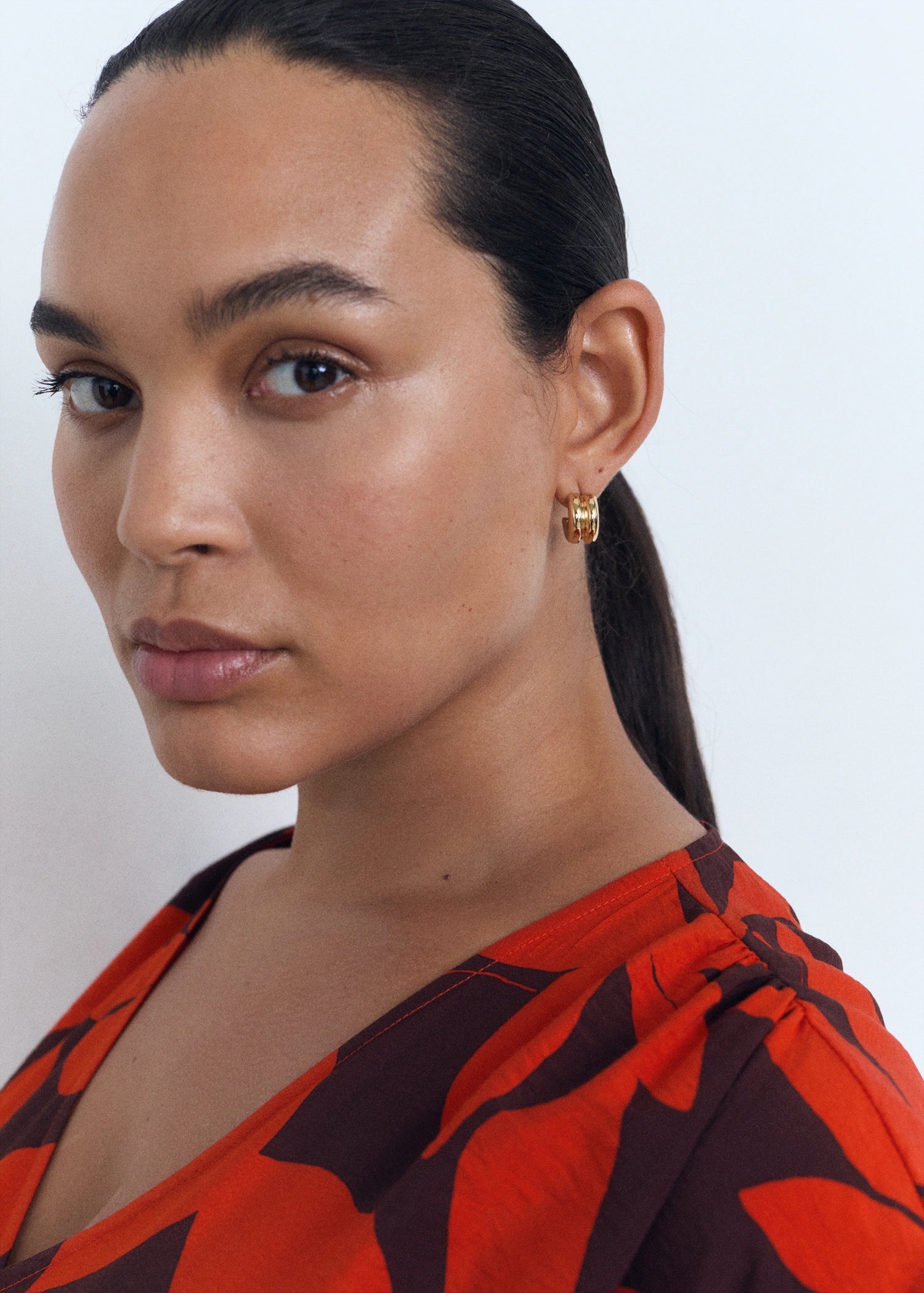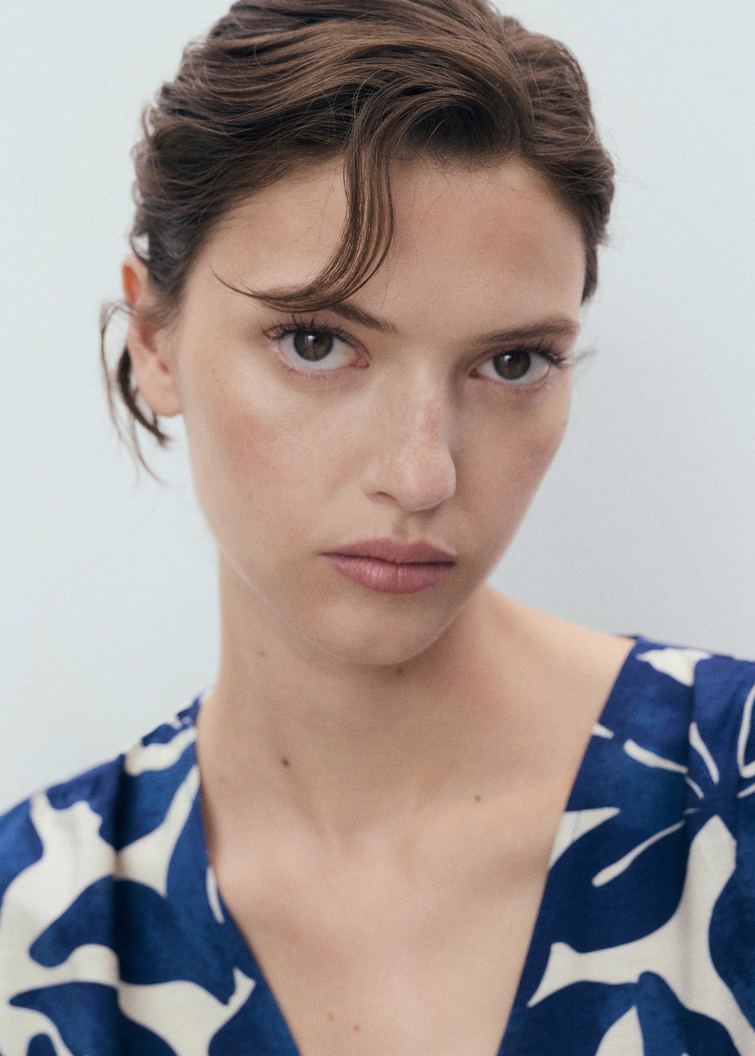 Long design. A-line design. Print. V-neck. Short sleeves. Gathered panel at the waist. No fastening. Available Plus. This garment is part of our casual collection, designed to stylishly accompany you in your day-to-day life.