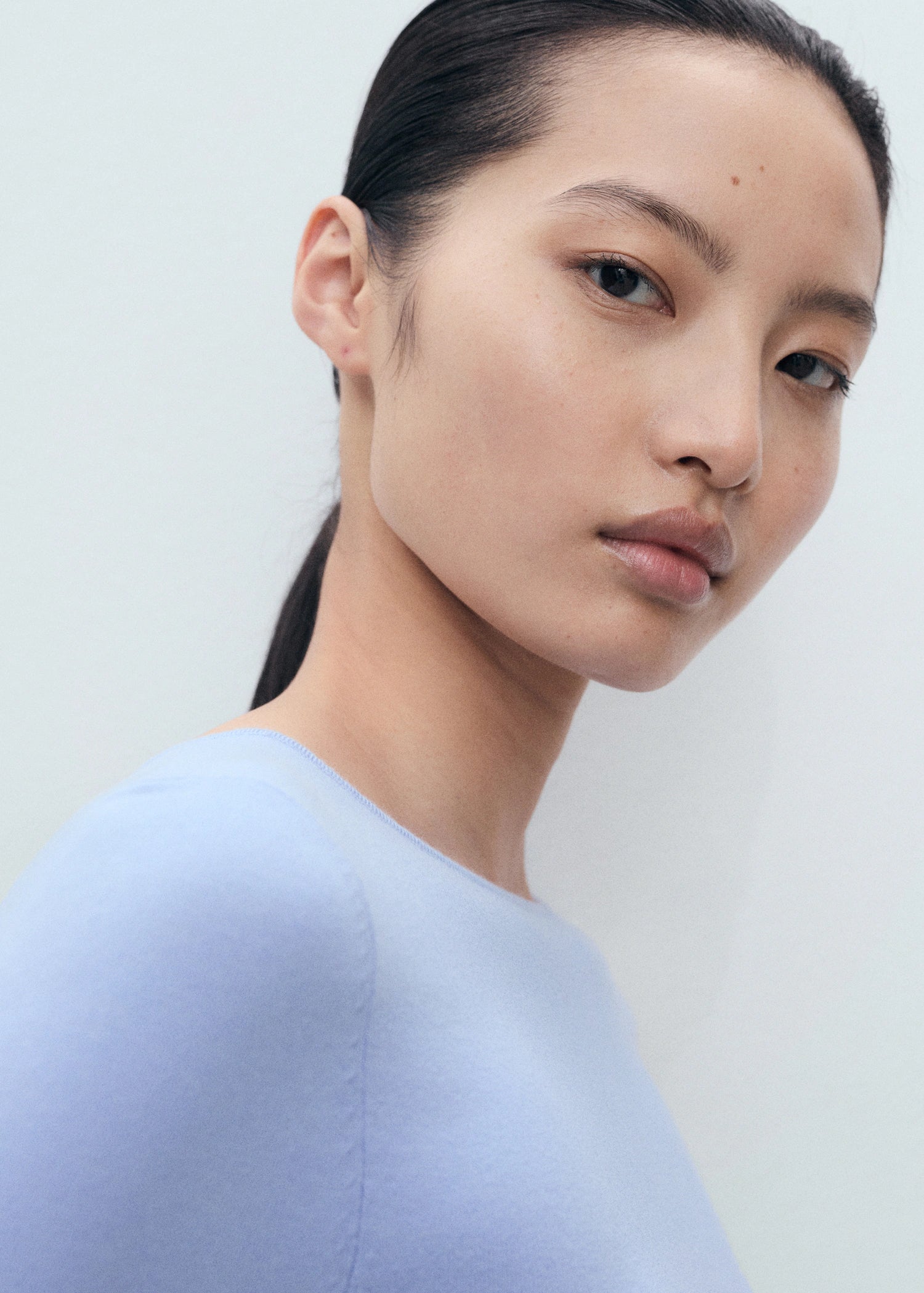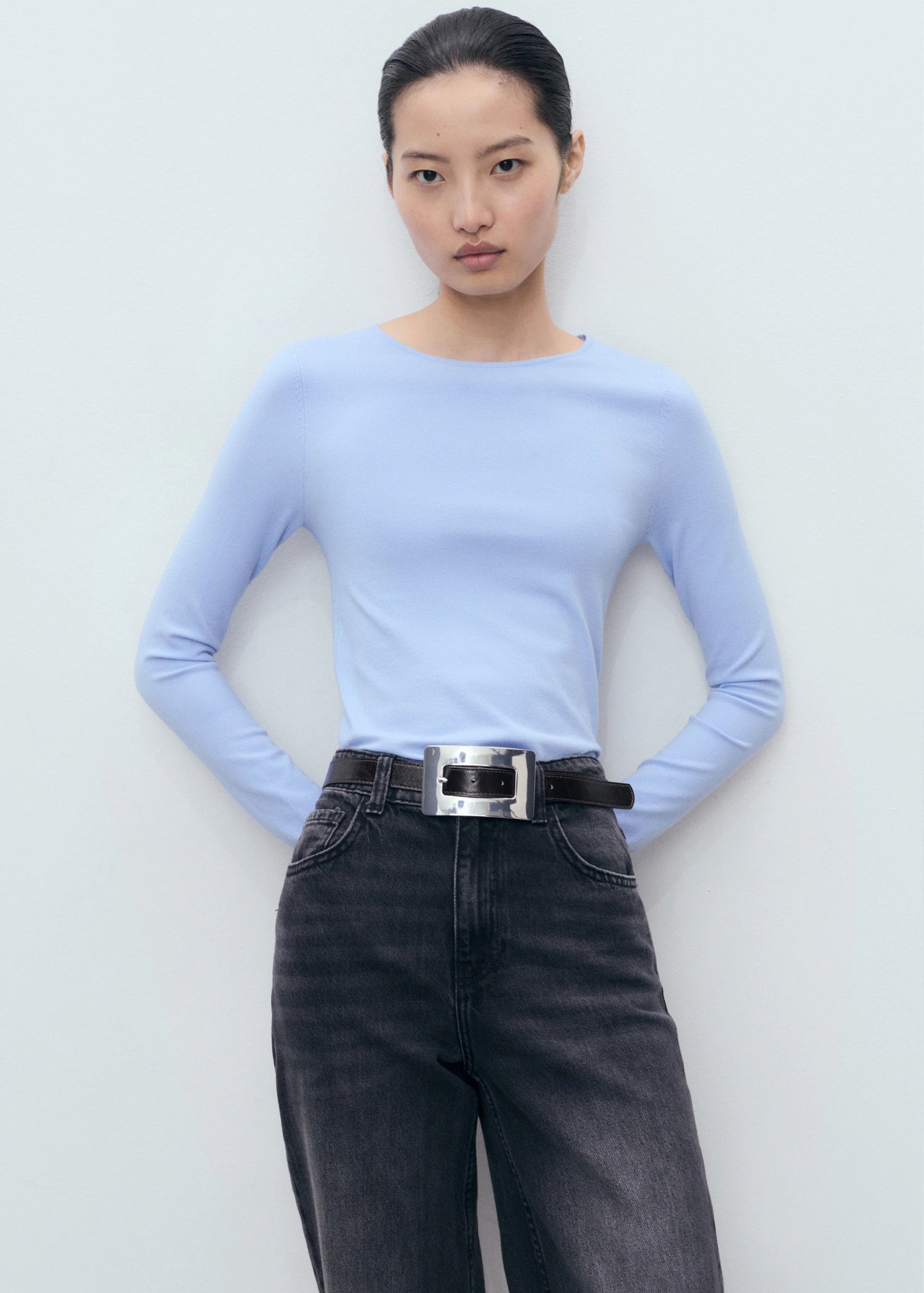 Crafted from fine-knit fabric, this tailored design features a round neckline and long sleeves. No fastening