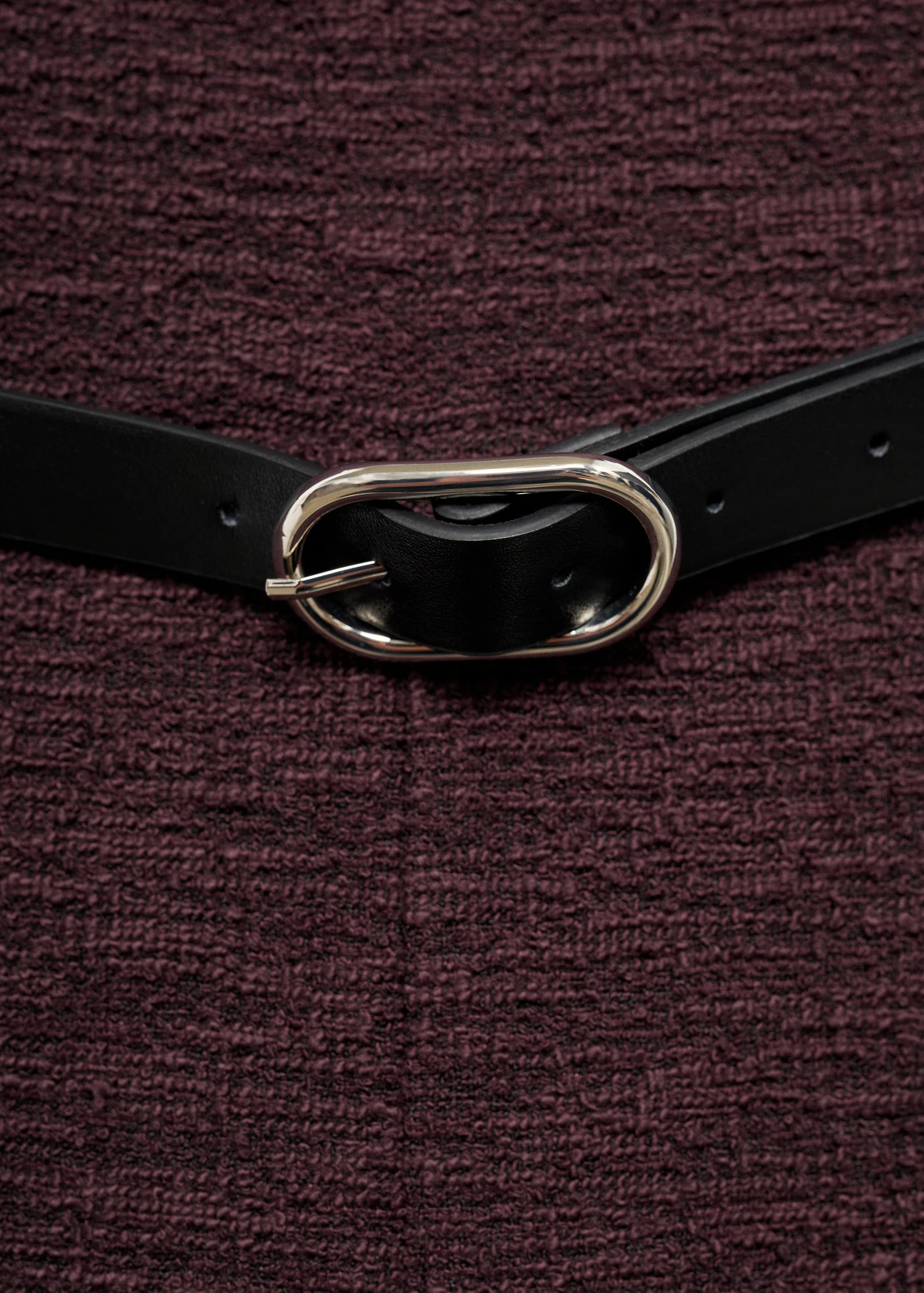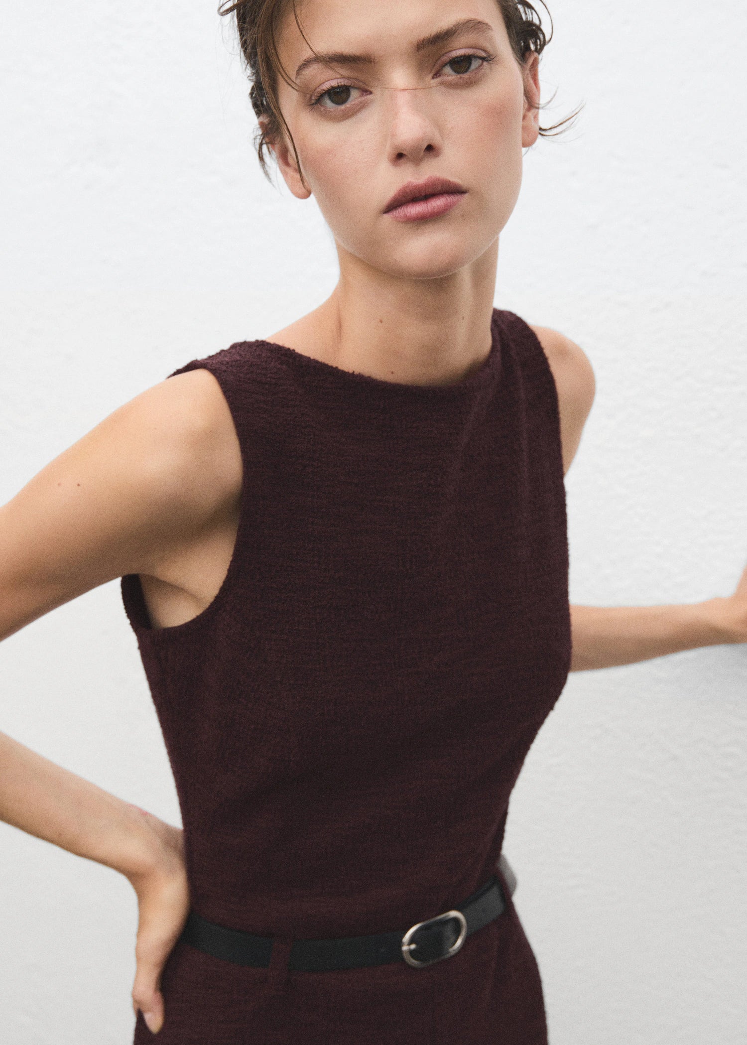 Speckled jacquard. Long design. Straight Design. Boat neck. Sleeveless. Wide straps. Belt loops. Belt buckle fastening. Zip fastening on the back section. This garment is part of our casual collection, designed to stylishly accompany you in your day-to-day life.