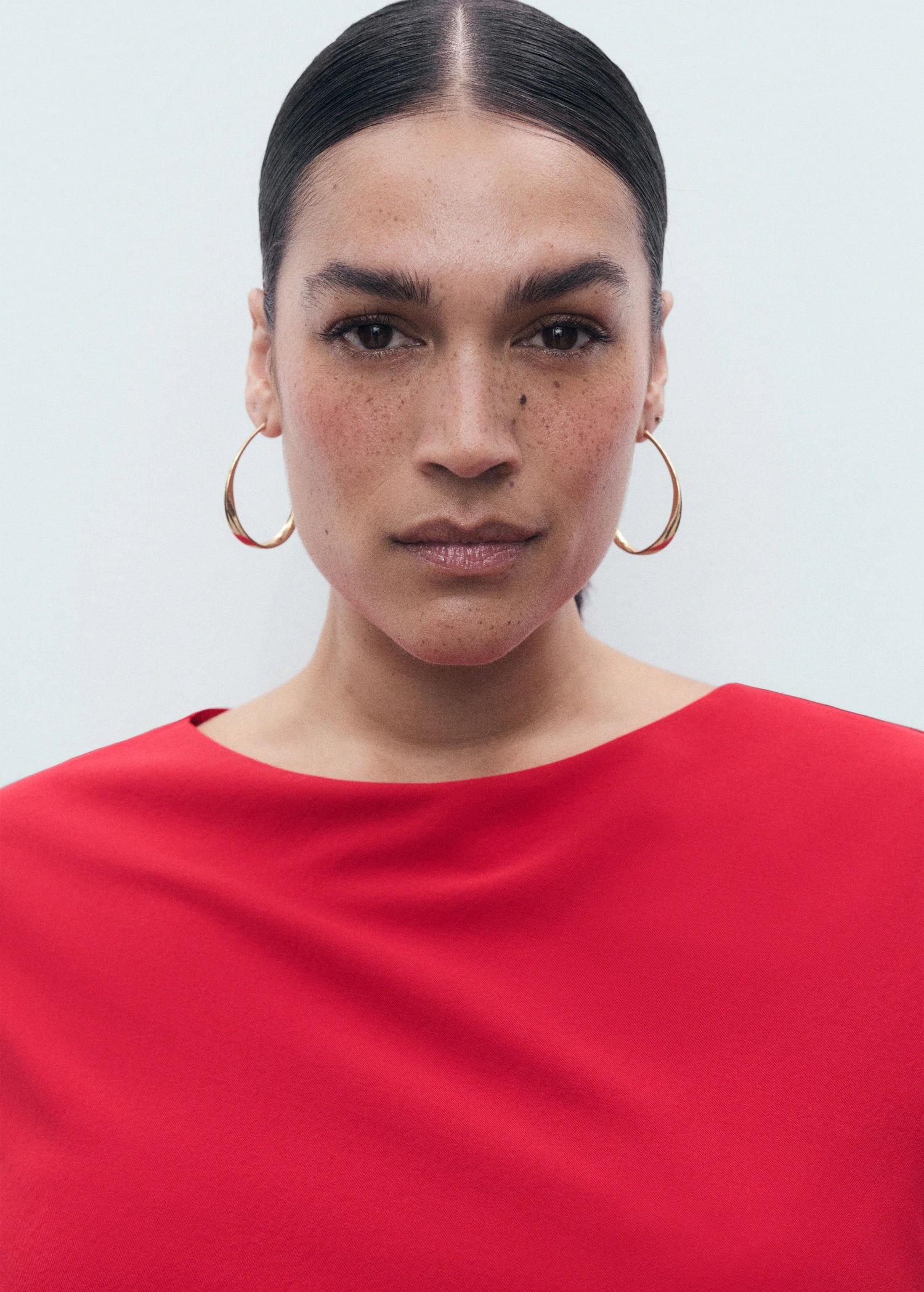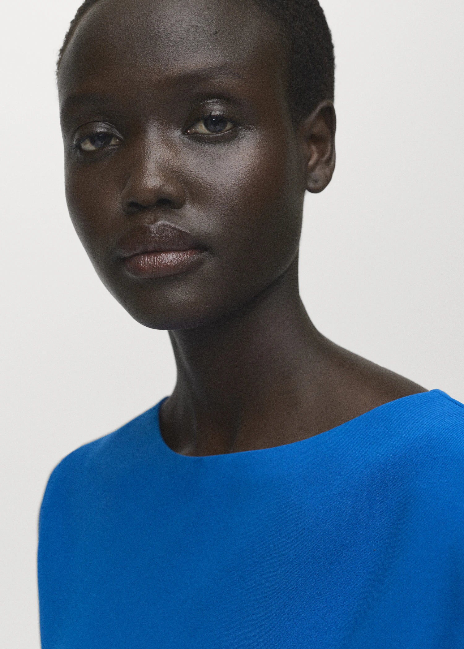 Midi design. Fitted design. Round neck. Sleeveless. Wide straps. Side ruffles. Zip fastening on the back section. Inner lining. Available Plus. The blue colour is an online exclusive.