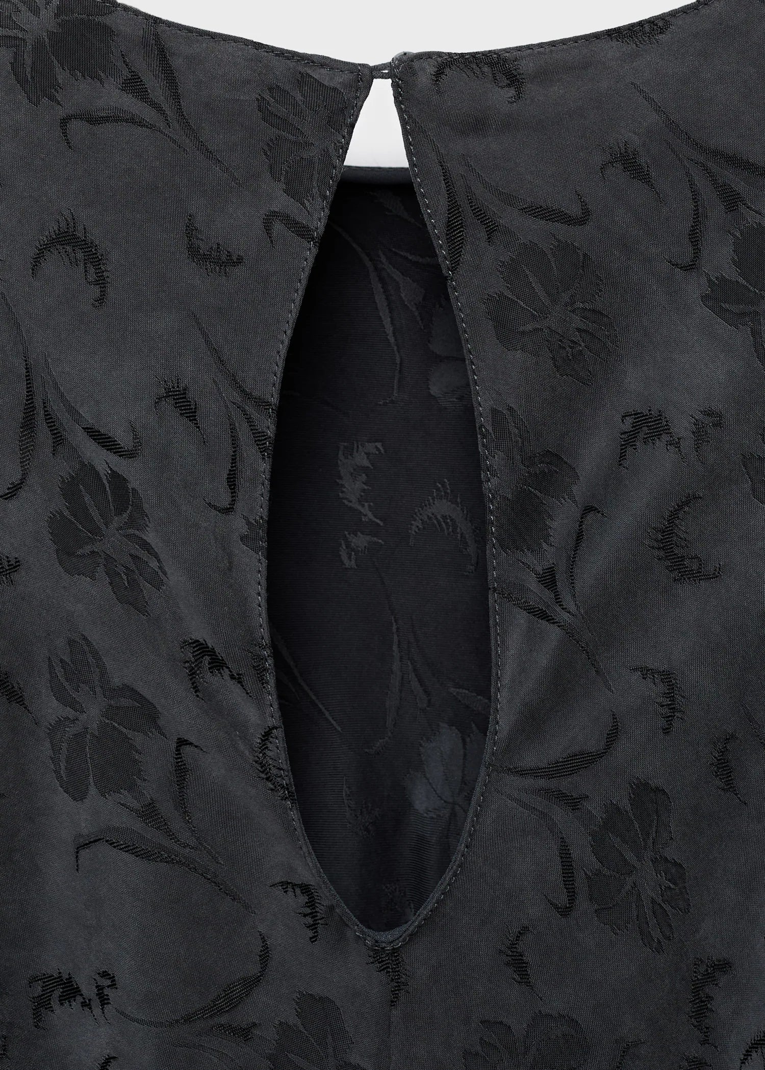 Satin-finish fabric. Midi design. Straight Design. Crew neck. Short sleeves. Floral details. Button closing on the neck. The pink colour is an online exclusive.