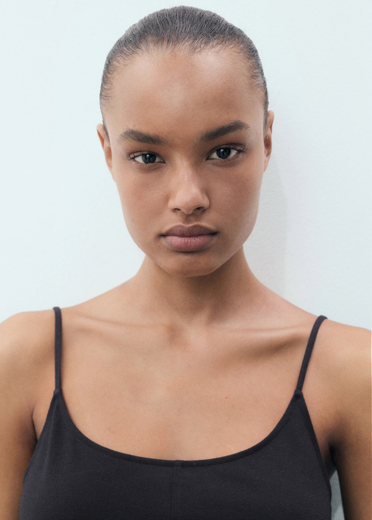 Long design. Straight Design. Low neckline. Sleeveless. Thin straps. No Fastening. This garment is part of our casual collection, designed to stylishly accompany you in your day-to-day life.
