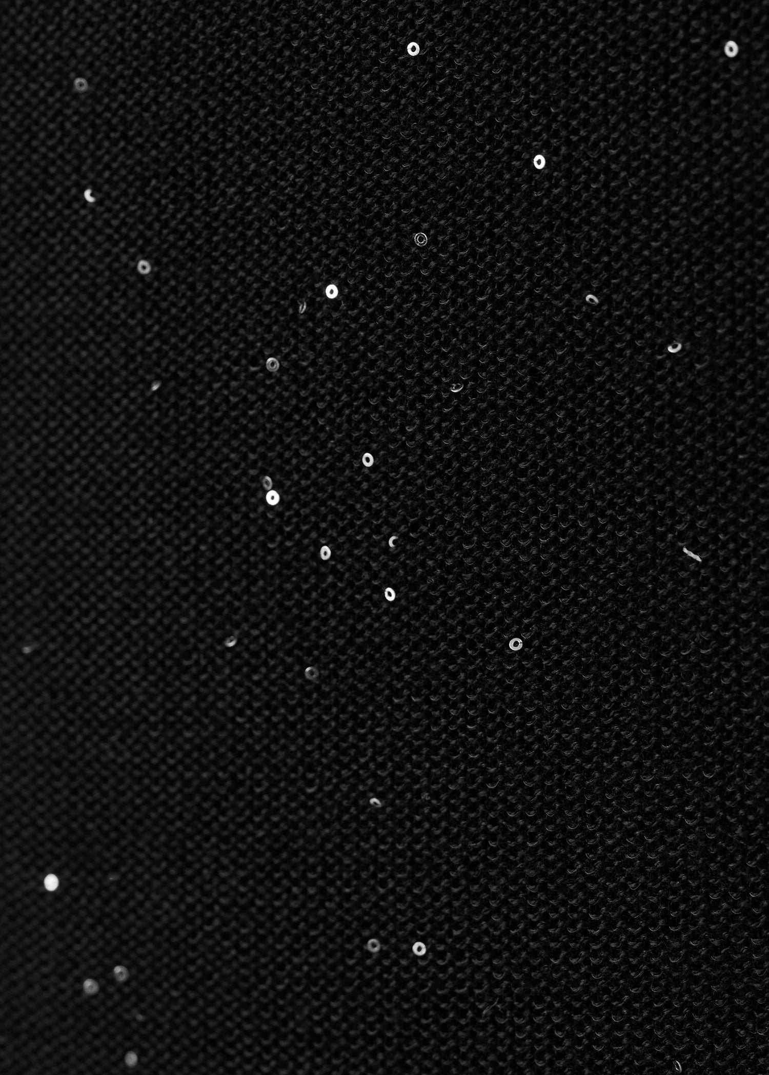Sparkled fabric. Fitted design. Boat neck. Long sleeves.